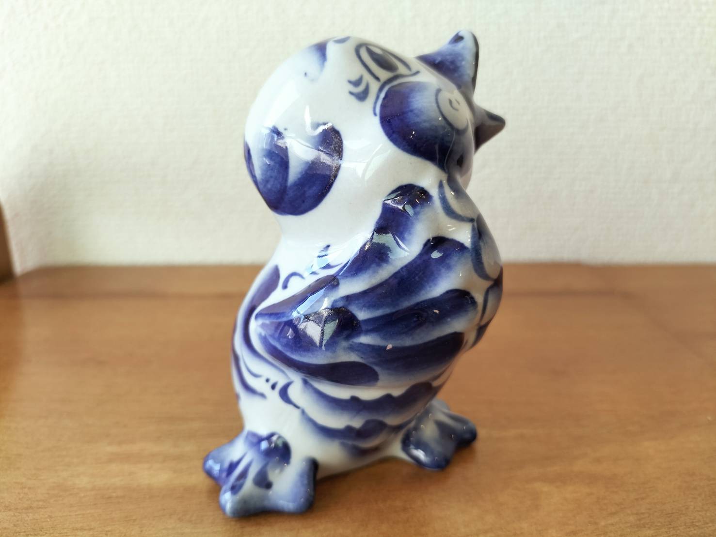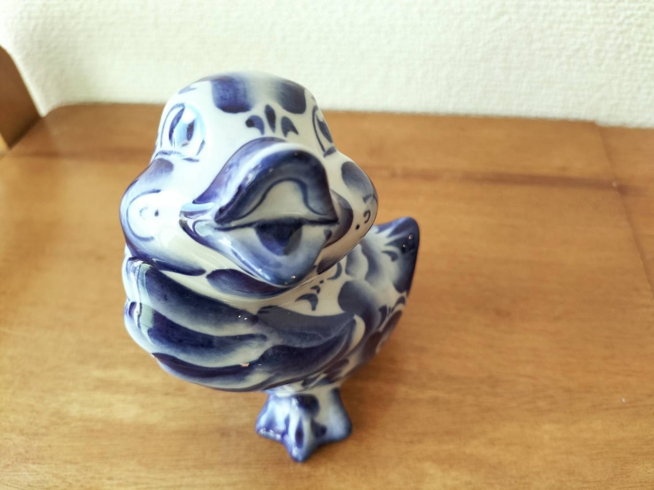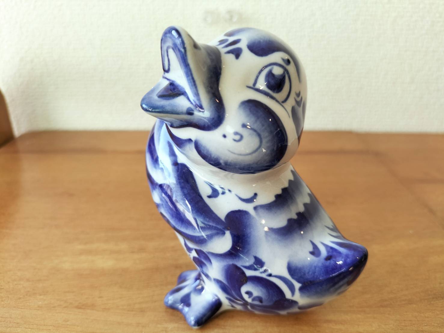 【GZ145】北欧ロシア雑貨、動物陶器 グジェリ焼【鳥】