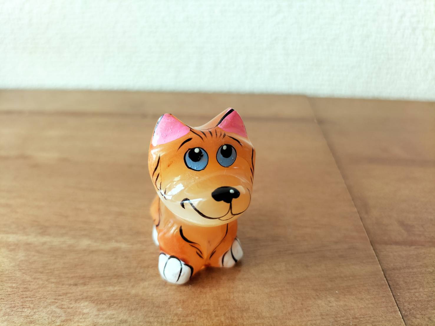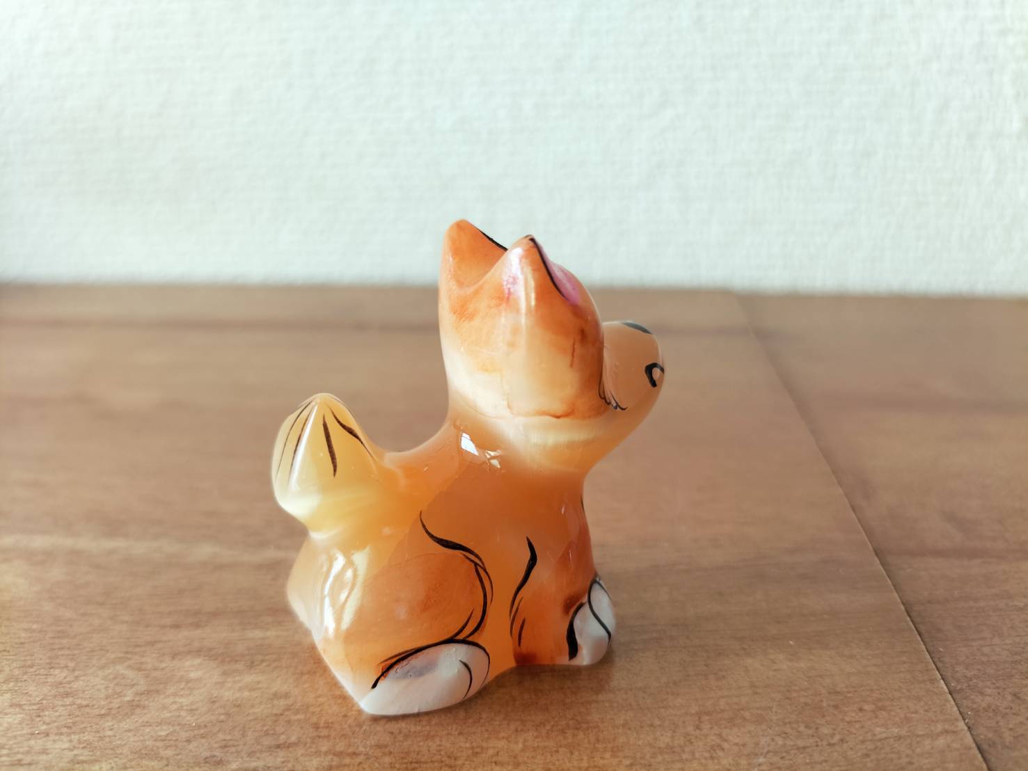 【CEL054】北欧ロシア雑貨の天然石(セレナイト) 犬 仔犬
