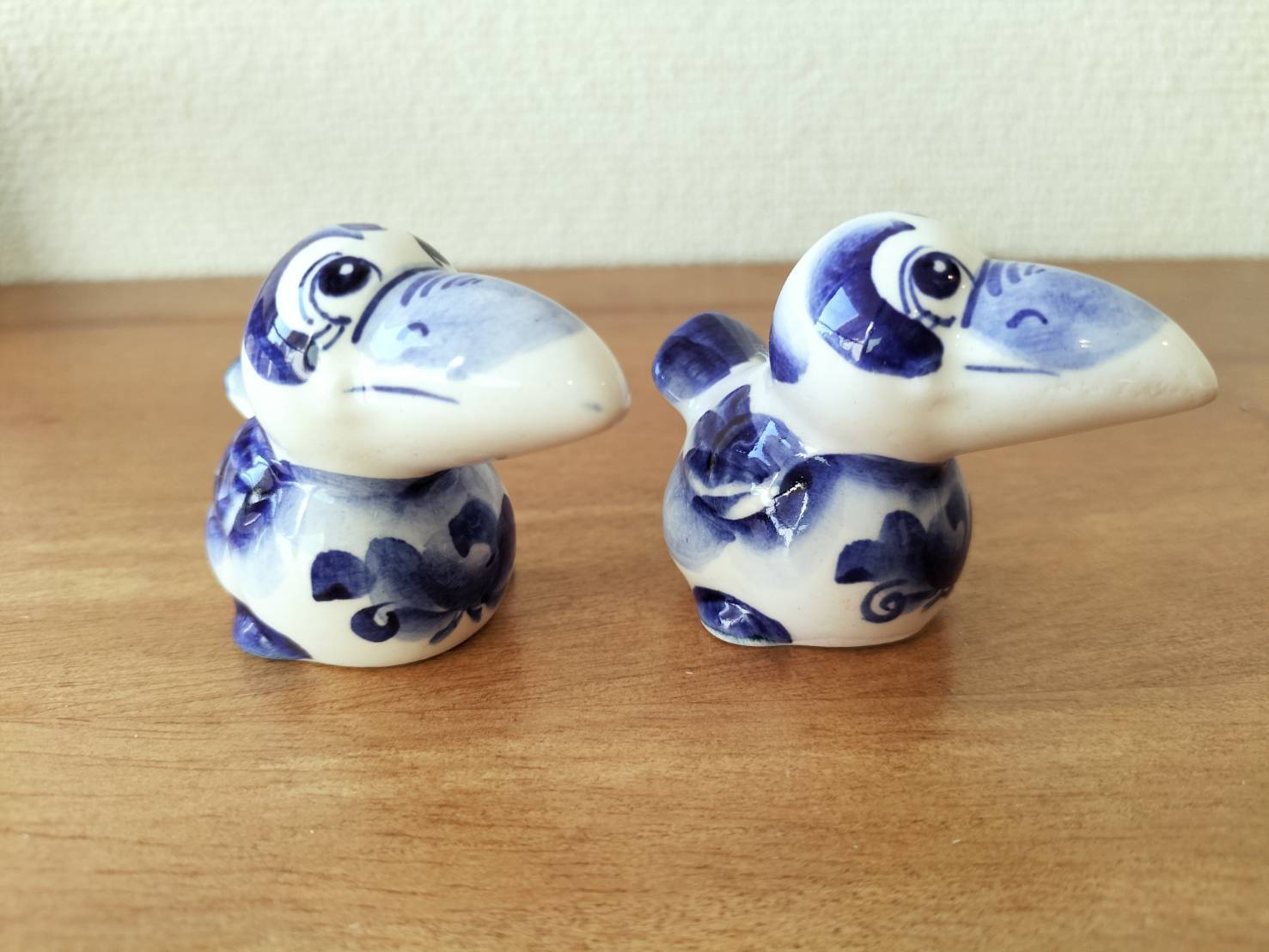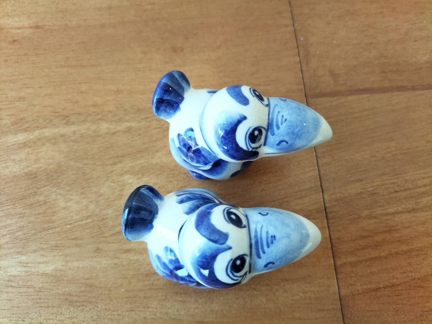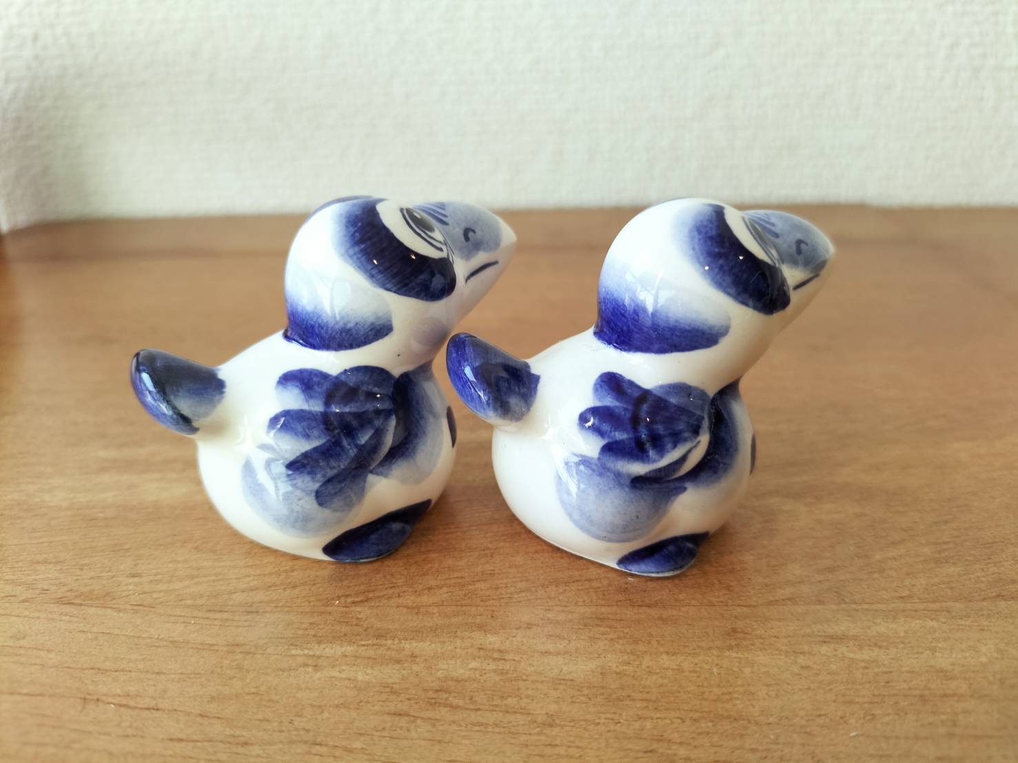 ロシアの伝統陶器、グジェリ焼きです。鳥がモチーフになっています。2体セット、バラ売り不可です。