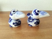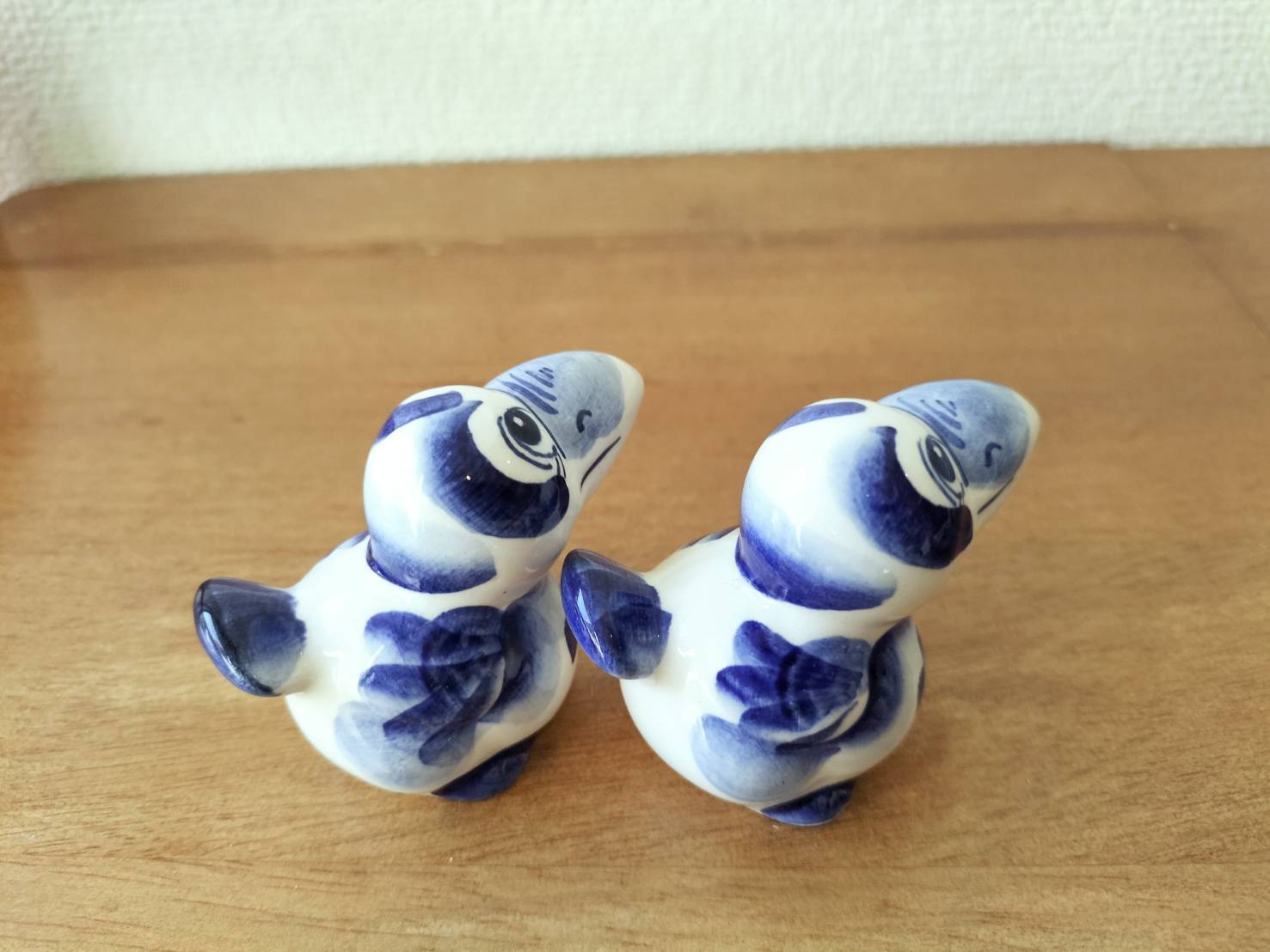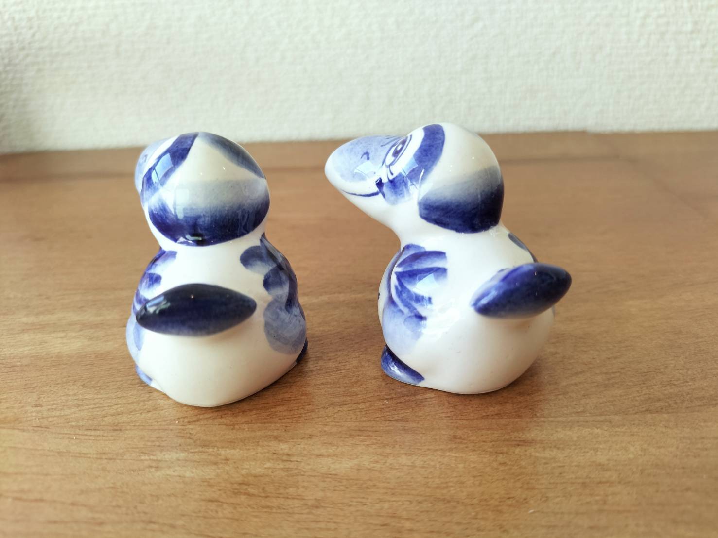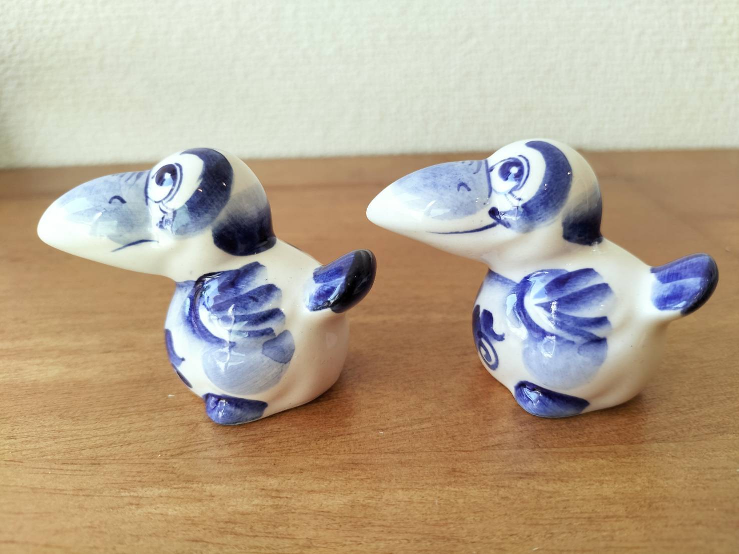 ロシアの伝統陶器、グジェリ焼きです。鳥がモチーフになっています。2体セット、バラ売り不可です。