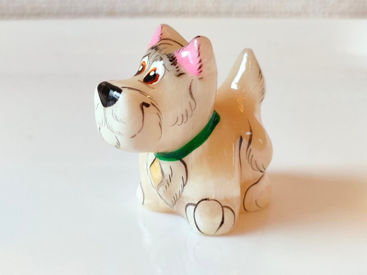 【CEL061】北欧ロシア雑貨の天然石(セレナイト) シュナウザー 犬