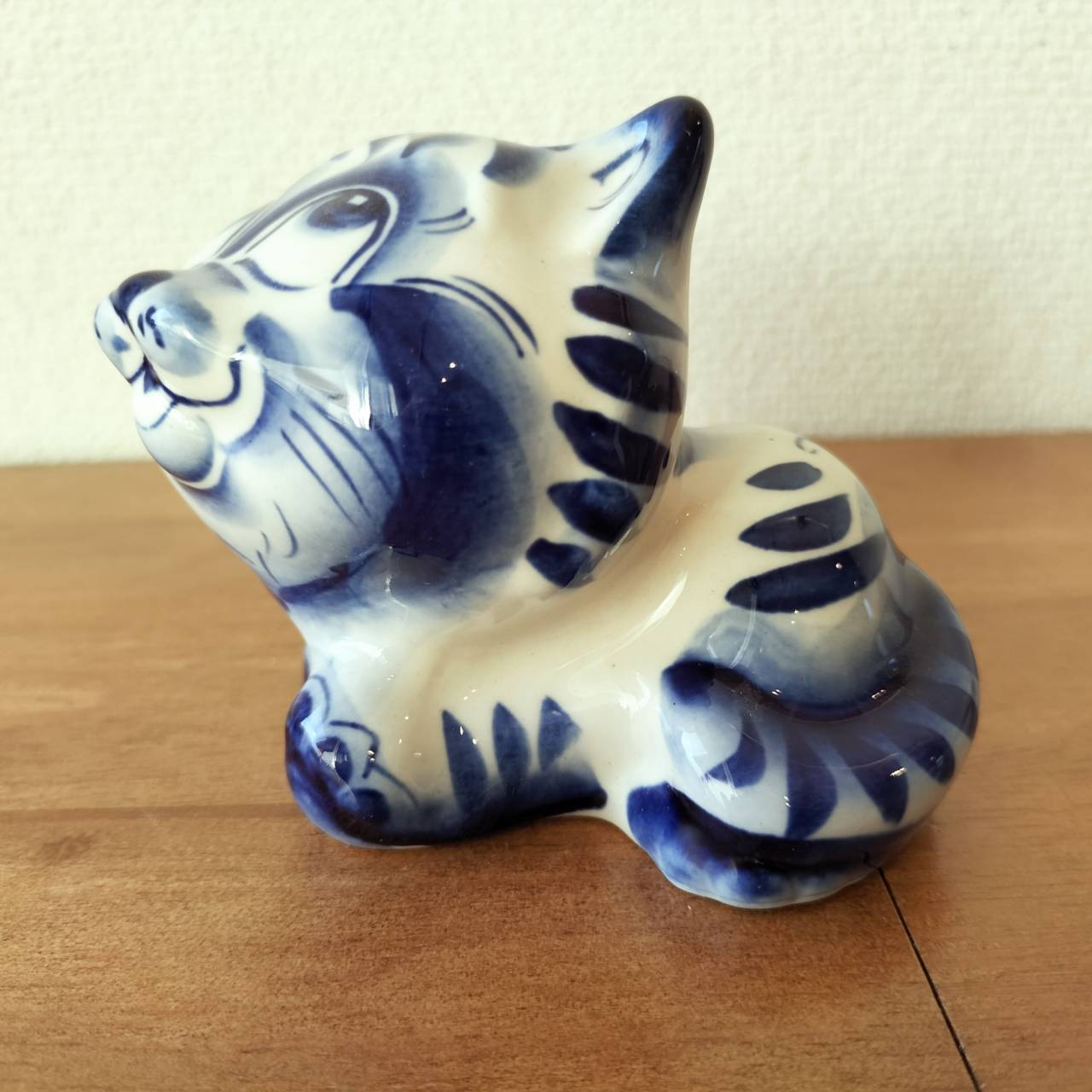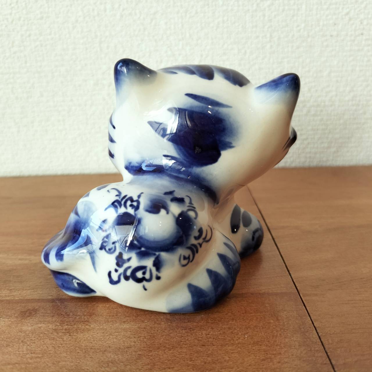 ロシアの伝統陶器、グジェリ焼きです。ネコがモチーフになっています。