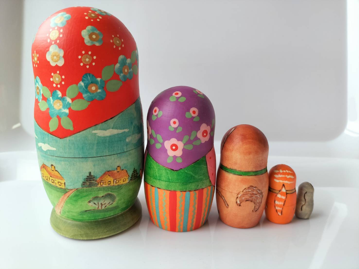 リュボーフィさんの母親のナジェージダ・イワンツォワさんは人生のすべてをマトリョーシカに捧げている大作家さんです。マトリョーシカの描画技術の伝道のため19歳で南米に渡り、その後は世界中の美術館やコレクション博物館などで彼女の作品は展示され始め、認知されました。ロシア・マトリョーシカ誕生の初期の頃の伝統的なデザインを守るスタイルで、この才能と技術は娘のリュボーフィ・ブズィキナさんに継承され、世界中で人気を博しています。贋作も多く、注意が呼びかけられています。