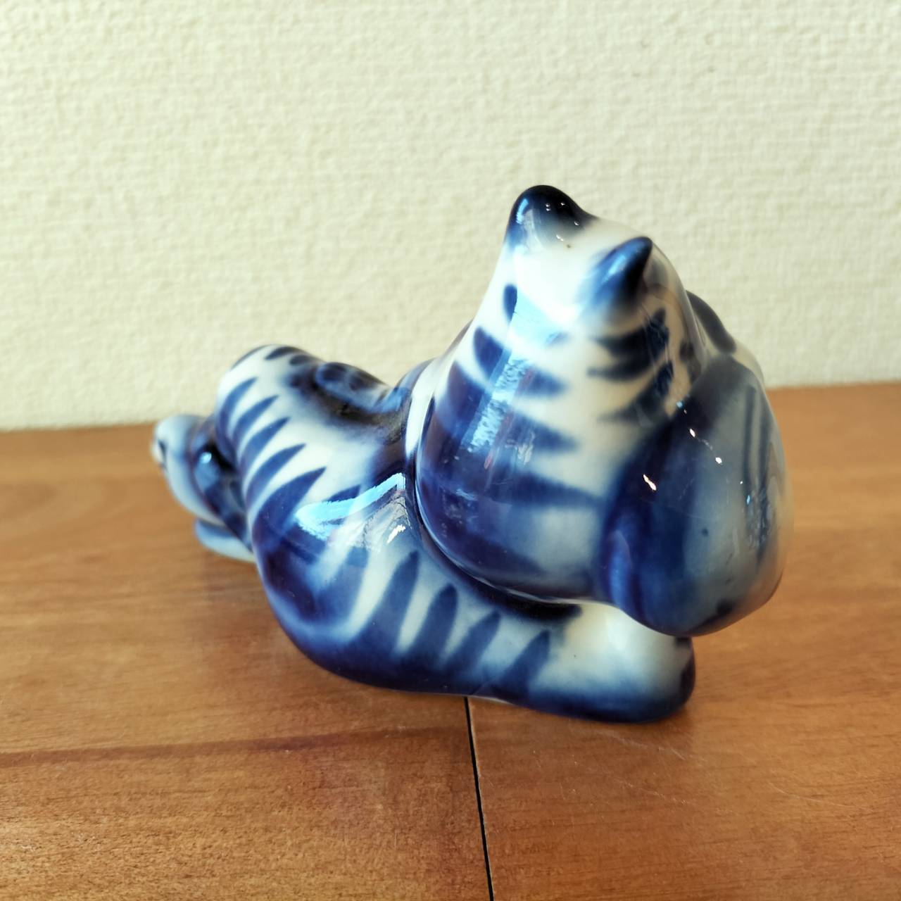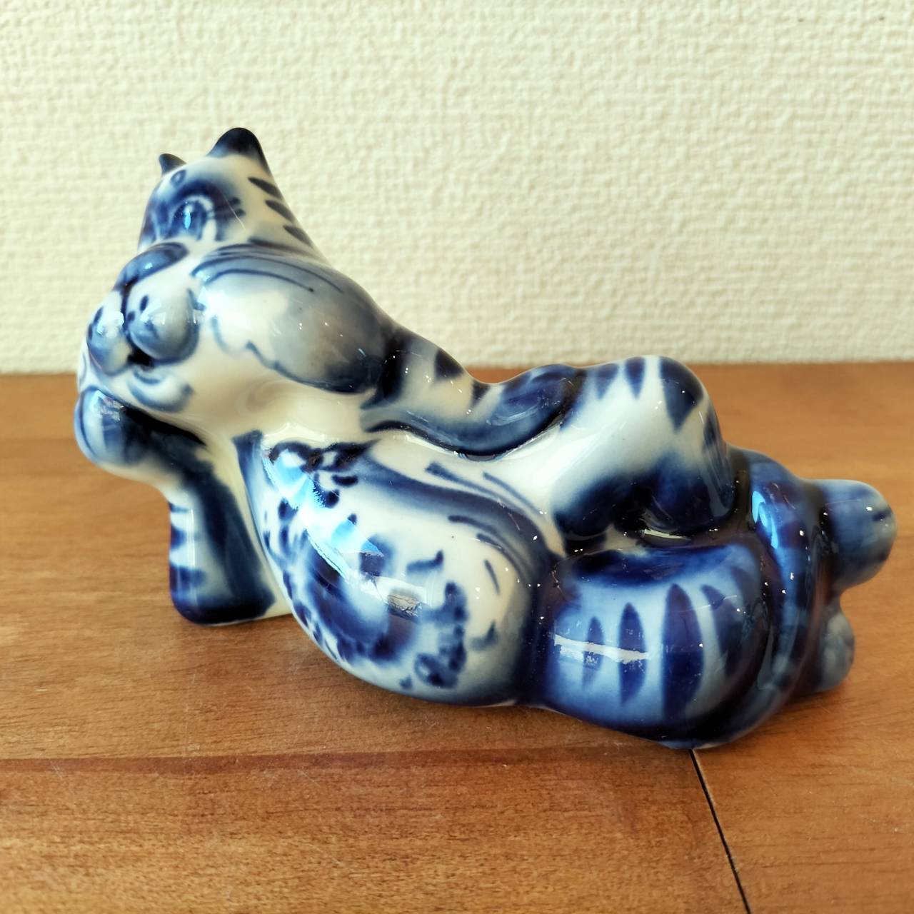 【GZ175】北欧ロシア雑貨 動物陶器 グジェリ焼 【ぐうたら猫 ネコ】