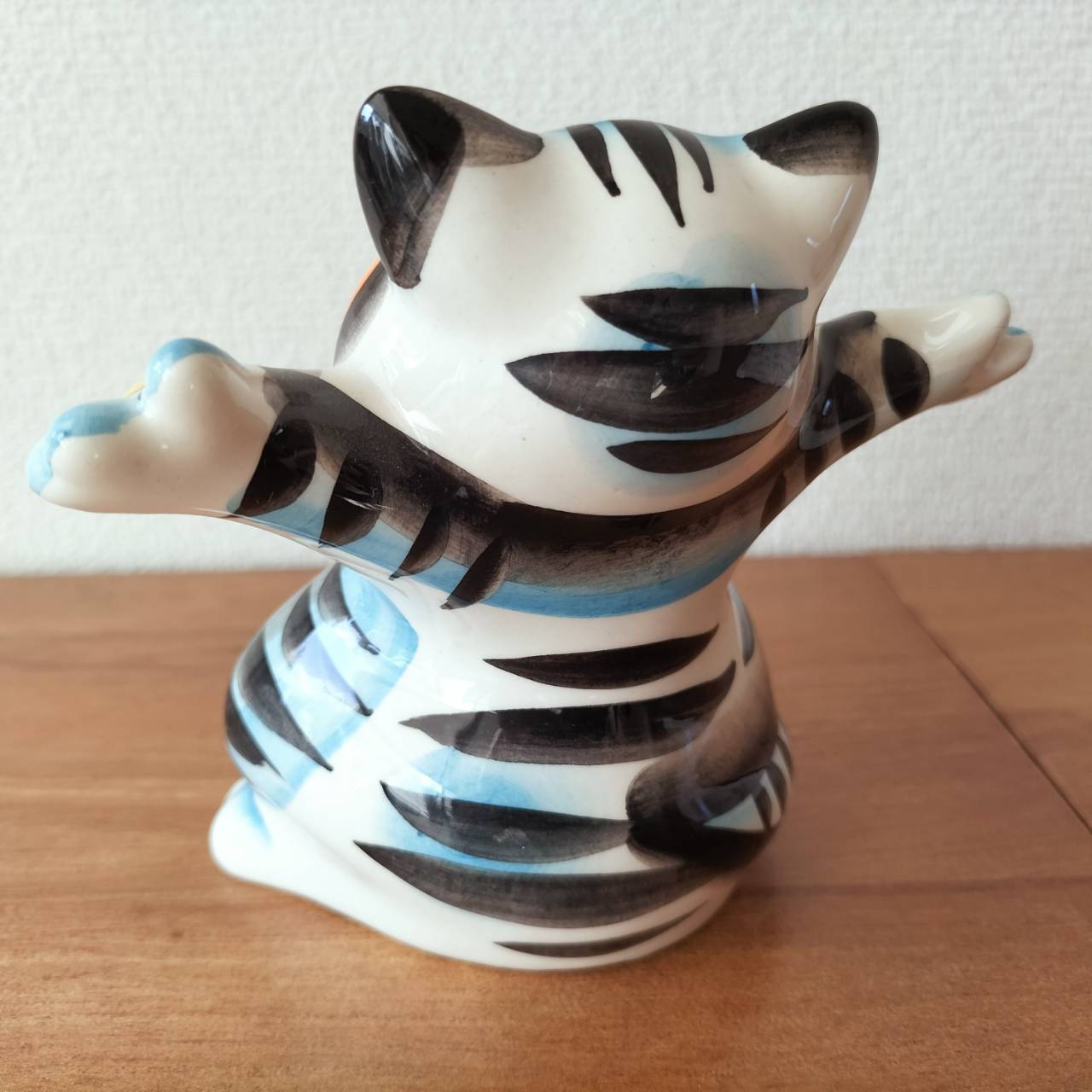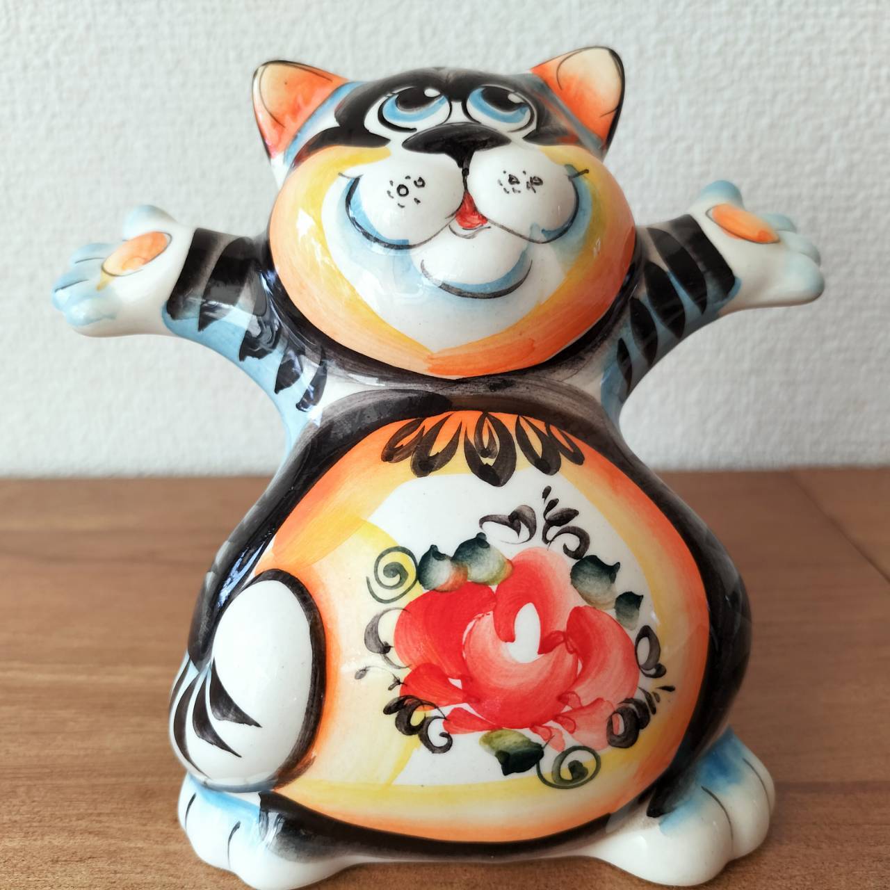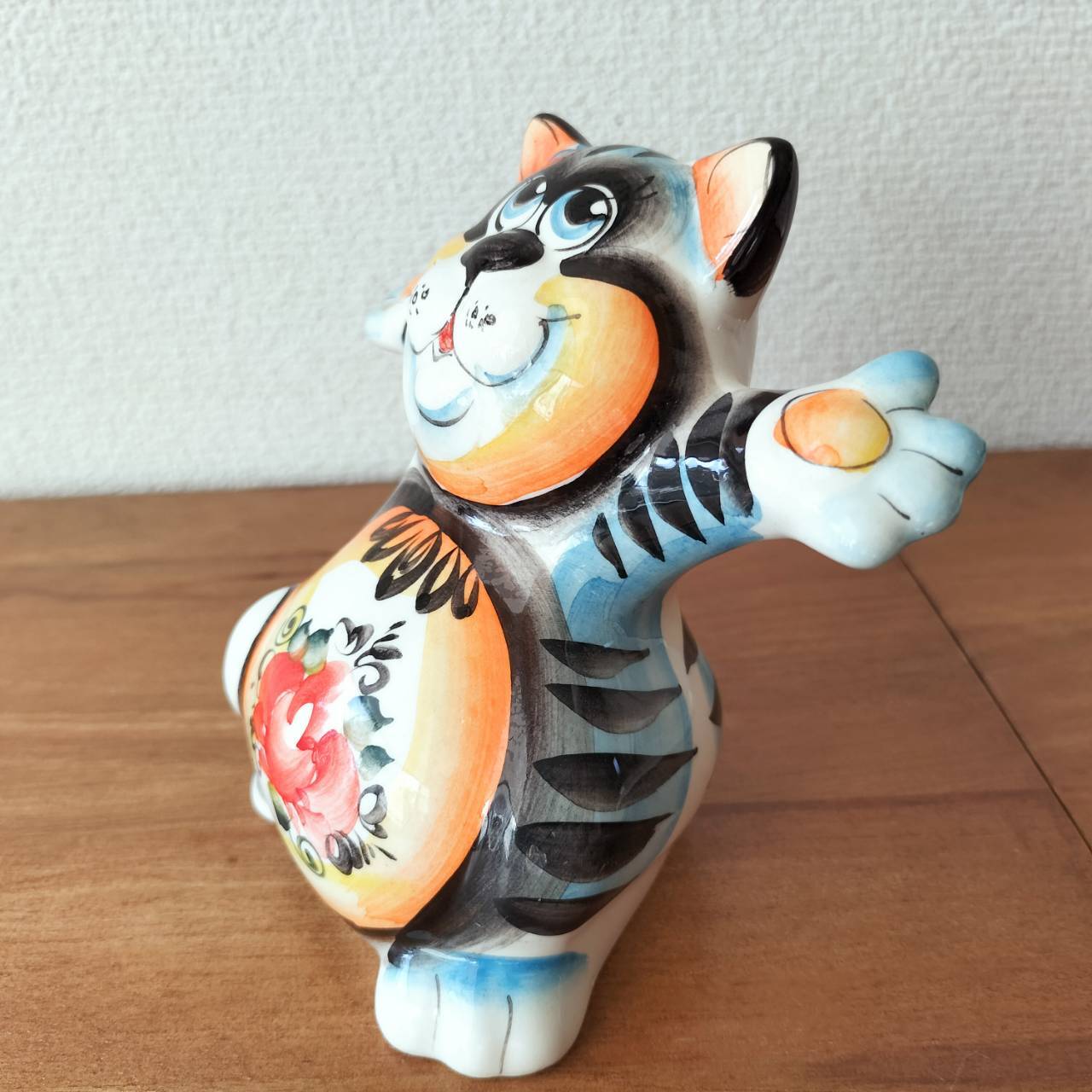 ロシアの伝統陶器、グジェリ焼きです。通せん坊している猫がモチーフになっています。