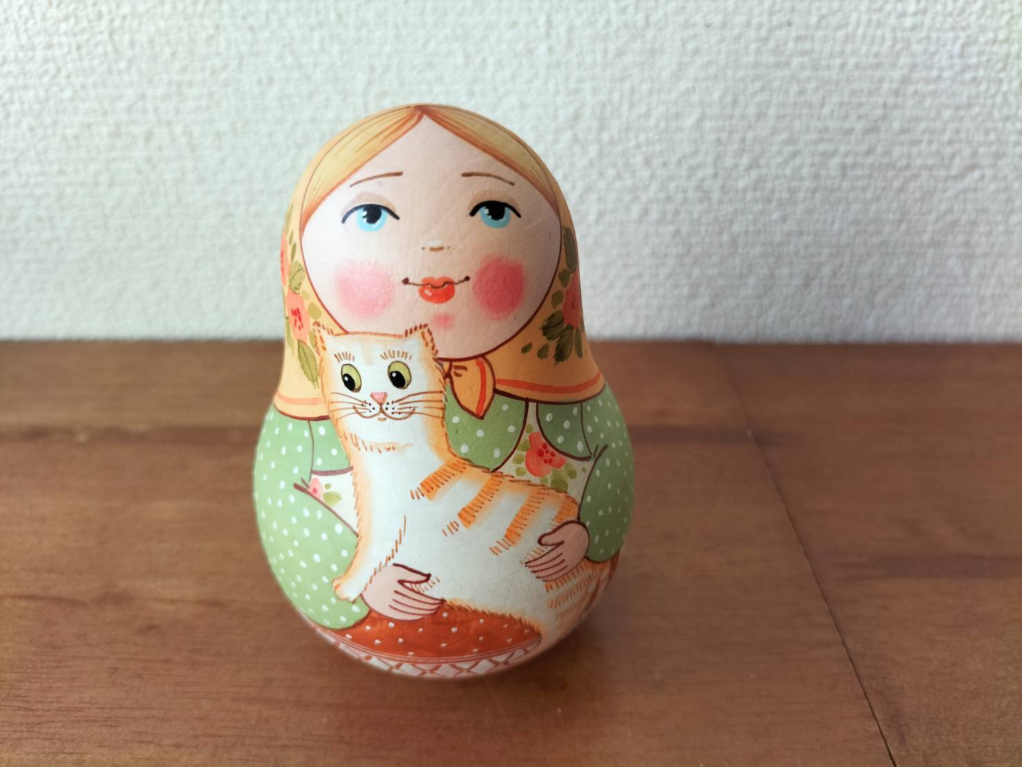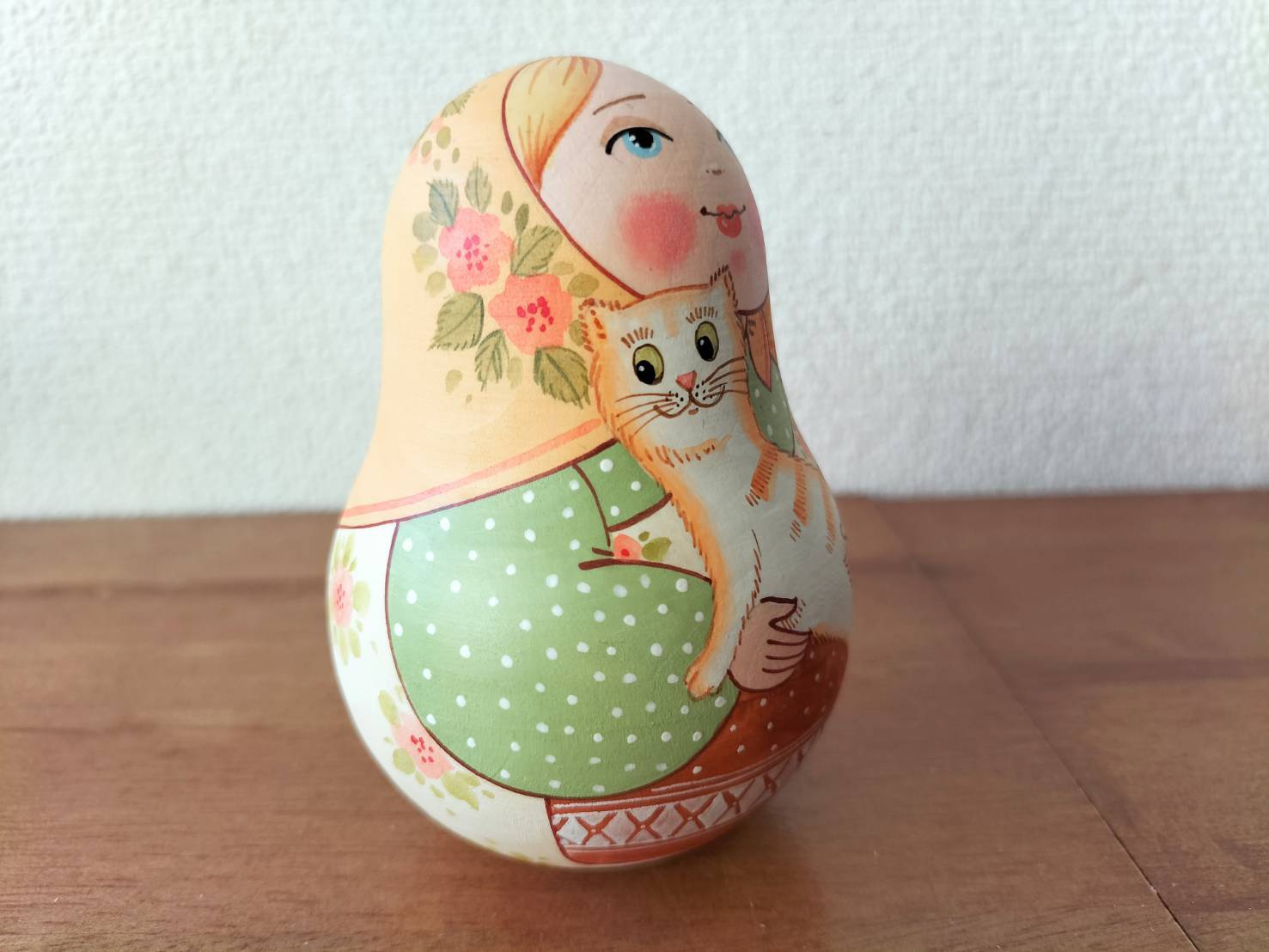 ロシアで有名なエレーナ・イワンツォワさんという作家さんのおきあがりこぼしです。前後左右に揺らすとカランコロンと鈴の音が鳴ります。