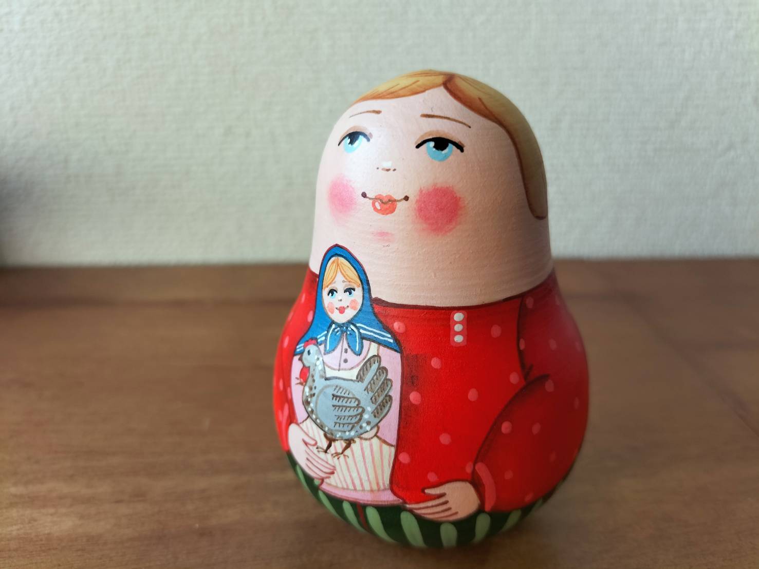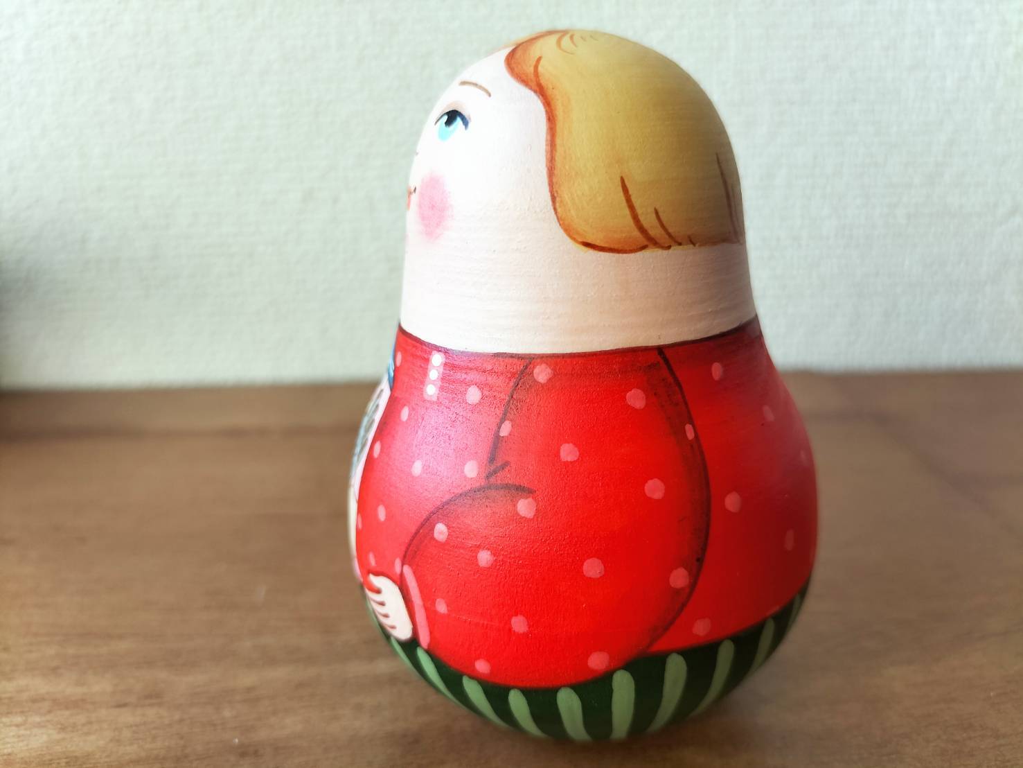 ロシアで有名なエレーナ・イワンツォワさんという作家さんのおきあがりこぼしです。前後左右に揺らすとカランコロンと鈴の音が鳴ります。