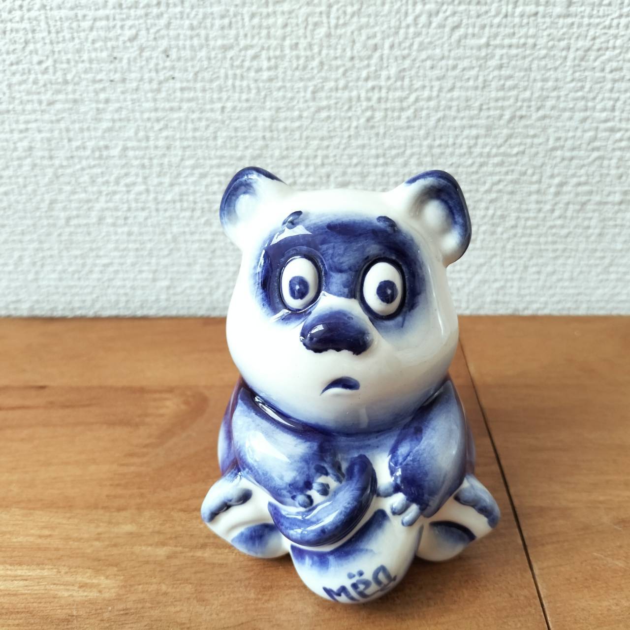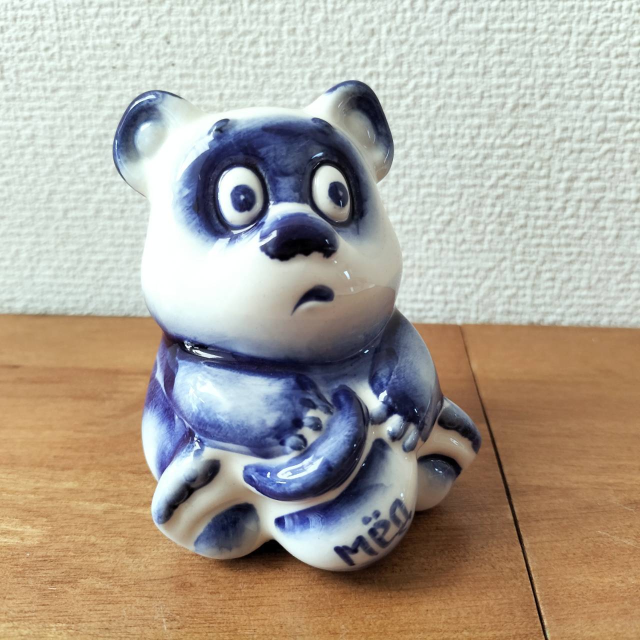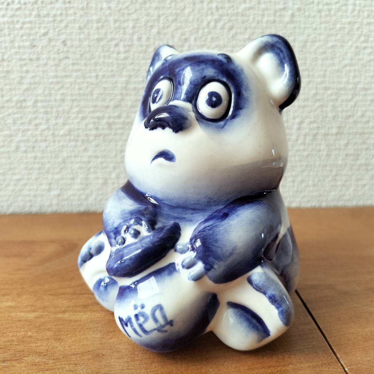 ロシアの伝統陶器、グジェリ焼きです。ロシア版ぷーさんのヴィンニー・プーフがモチーフになっています。