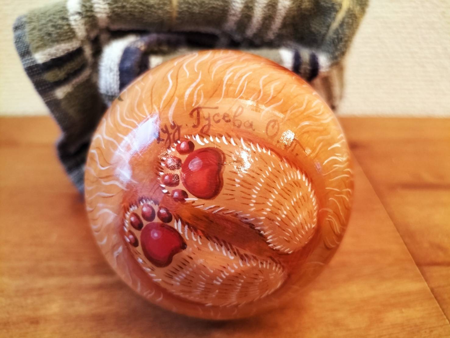 ロシアで有名なオリガ・グセヴァさんという作家の起き上がりこぼしです。前後左右に揺らすとカランコロンと鈴の音が鳴ります。ヨークシャーテリアをモチーフにしています。