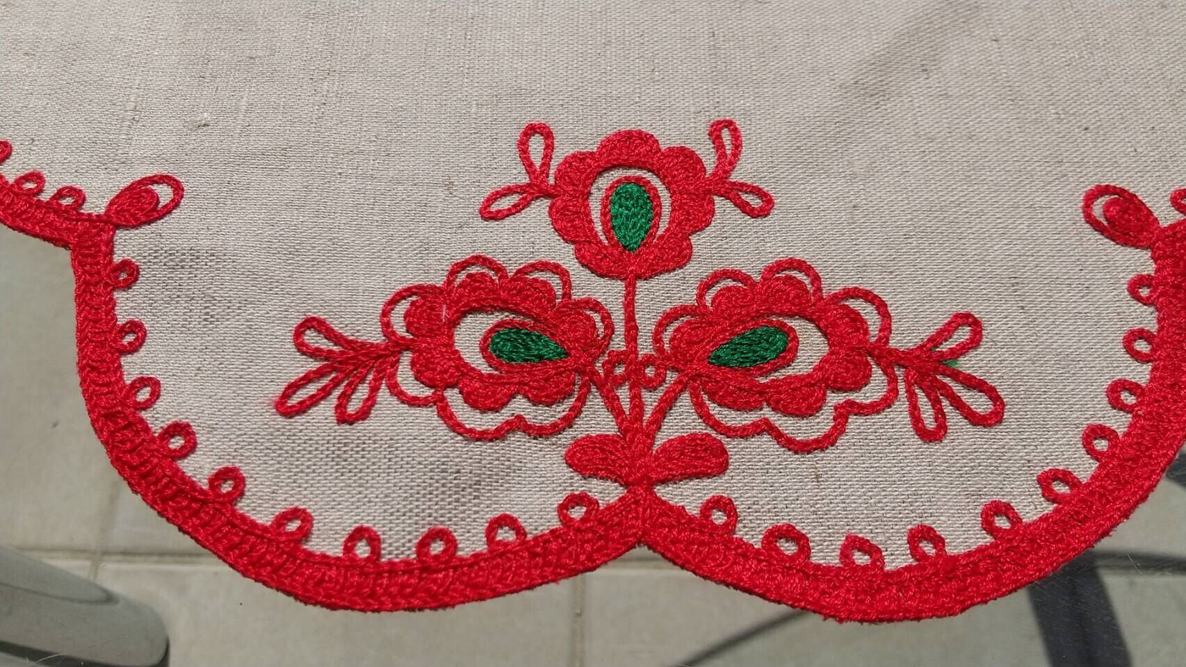 アルハンゲリスクの伝統工芸品である刺繍は赤色がアクセントとなっていて、とても可愛らしい印象です。テーブルに置くだけでお洒落に見えます。普段使いから来客時等のティーマットとしてもご利用いただけます。