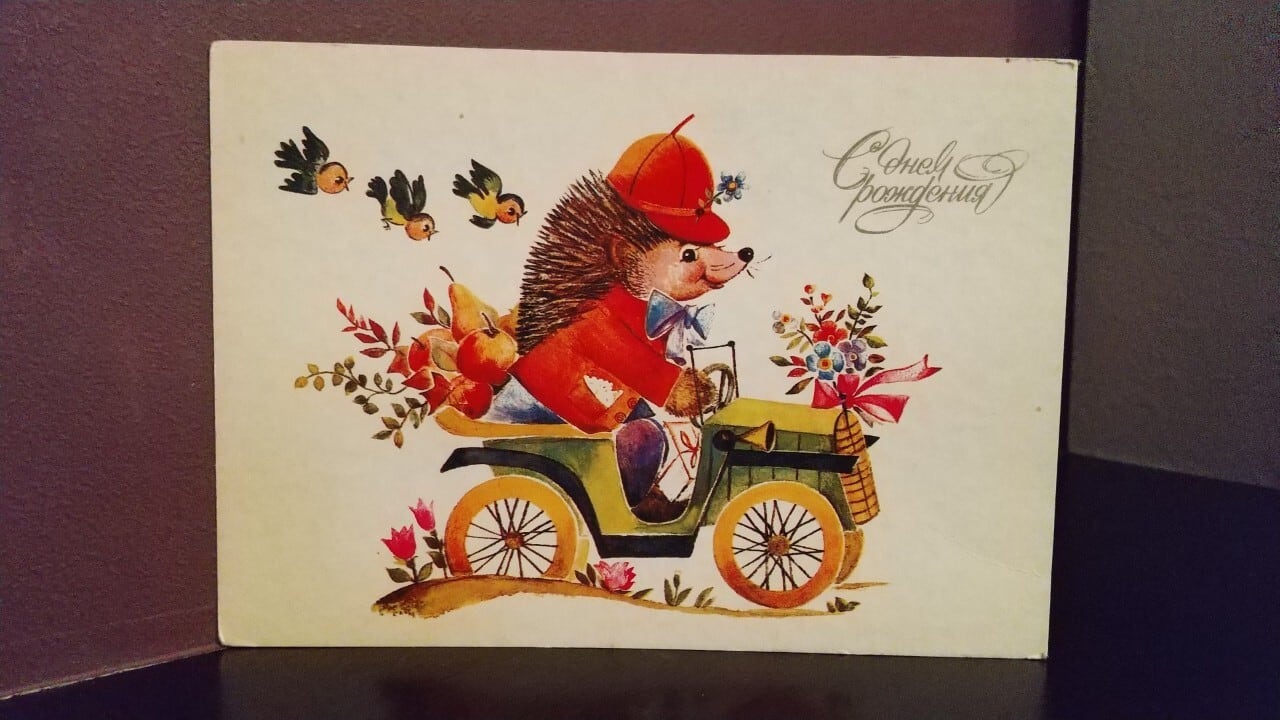 ソ連のヴィンテージ絵葉書です。ハリネズミがモチーフのレトロなポストカードです。