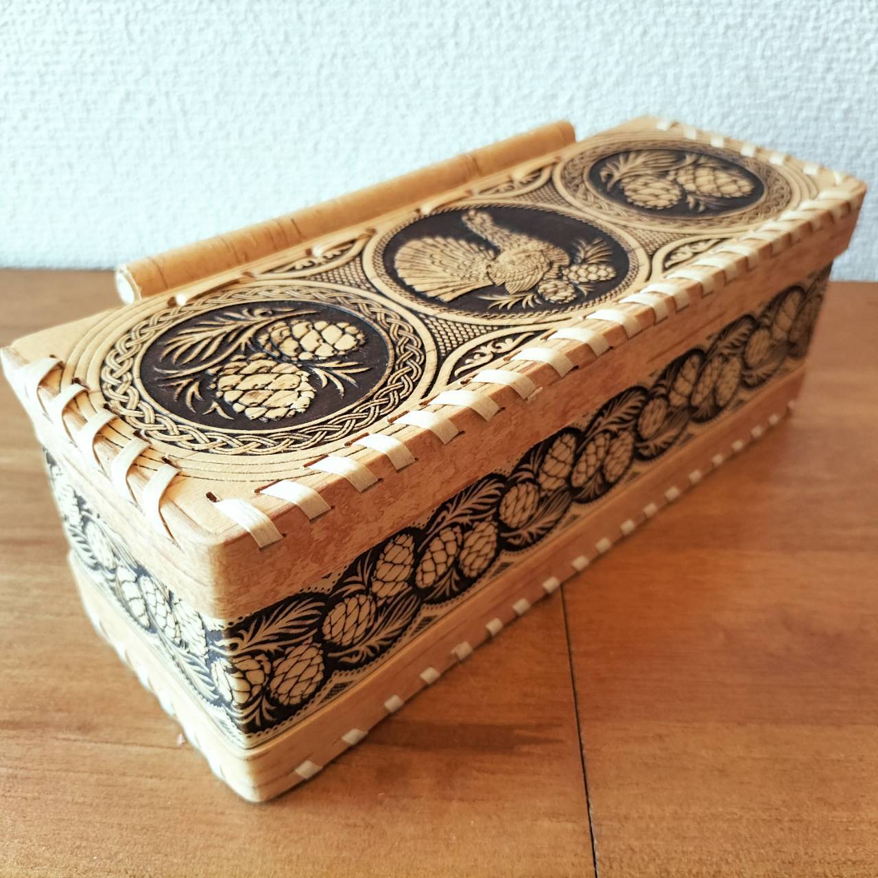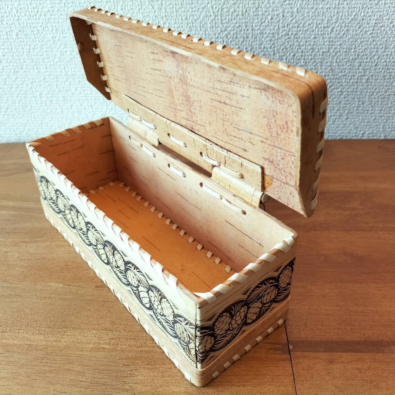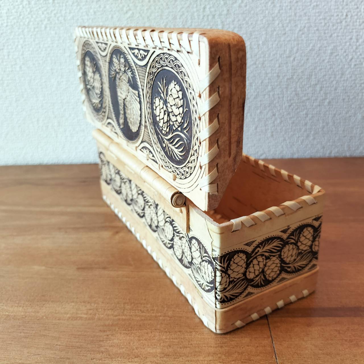 ロシア・北欧の小物入れ、ベレスタです。白樺の真皮で作られている白樺細工です。ベレスタ職人のハンドメイド作品です。