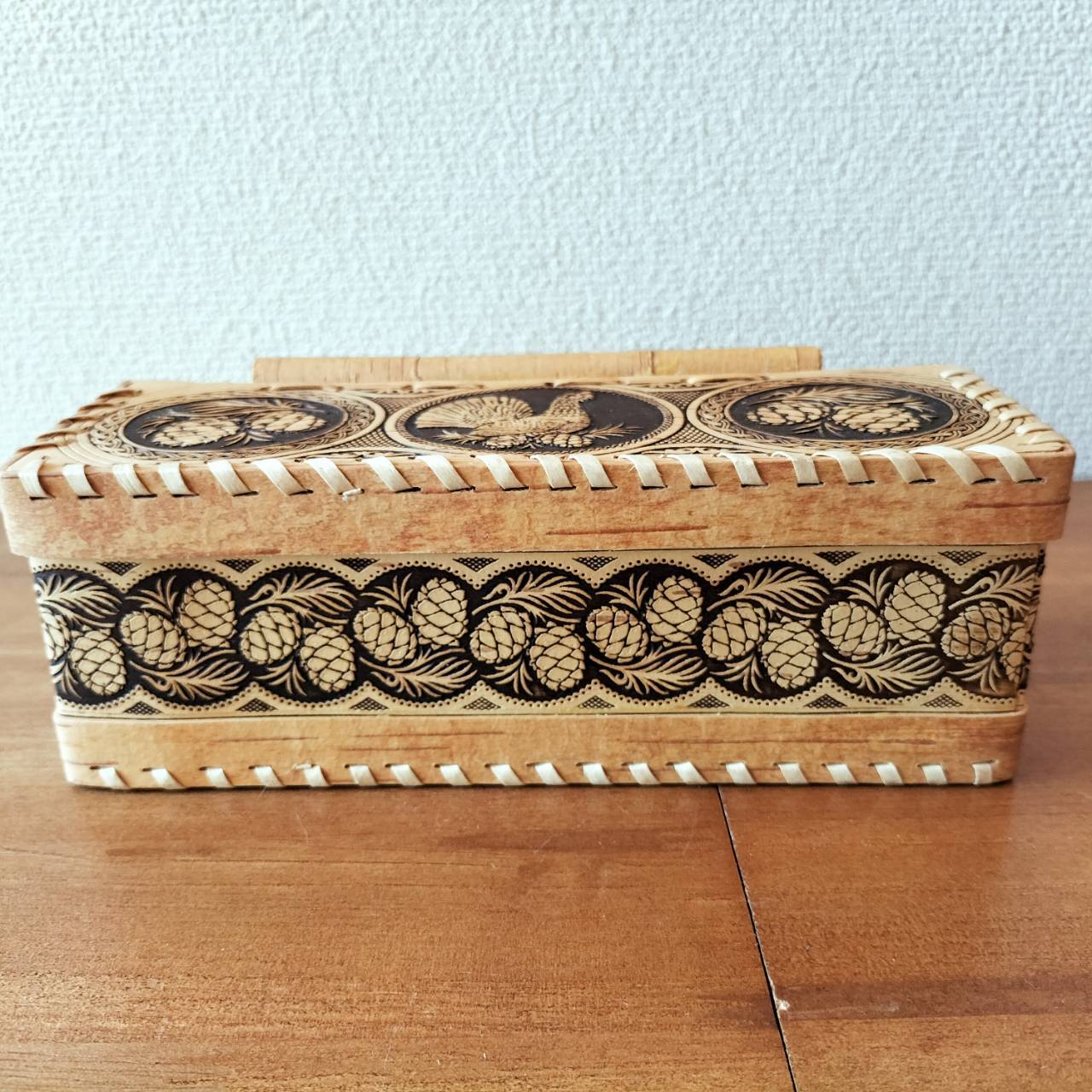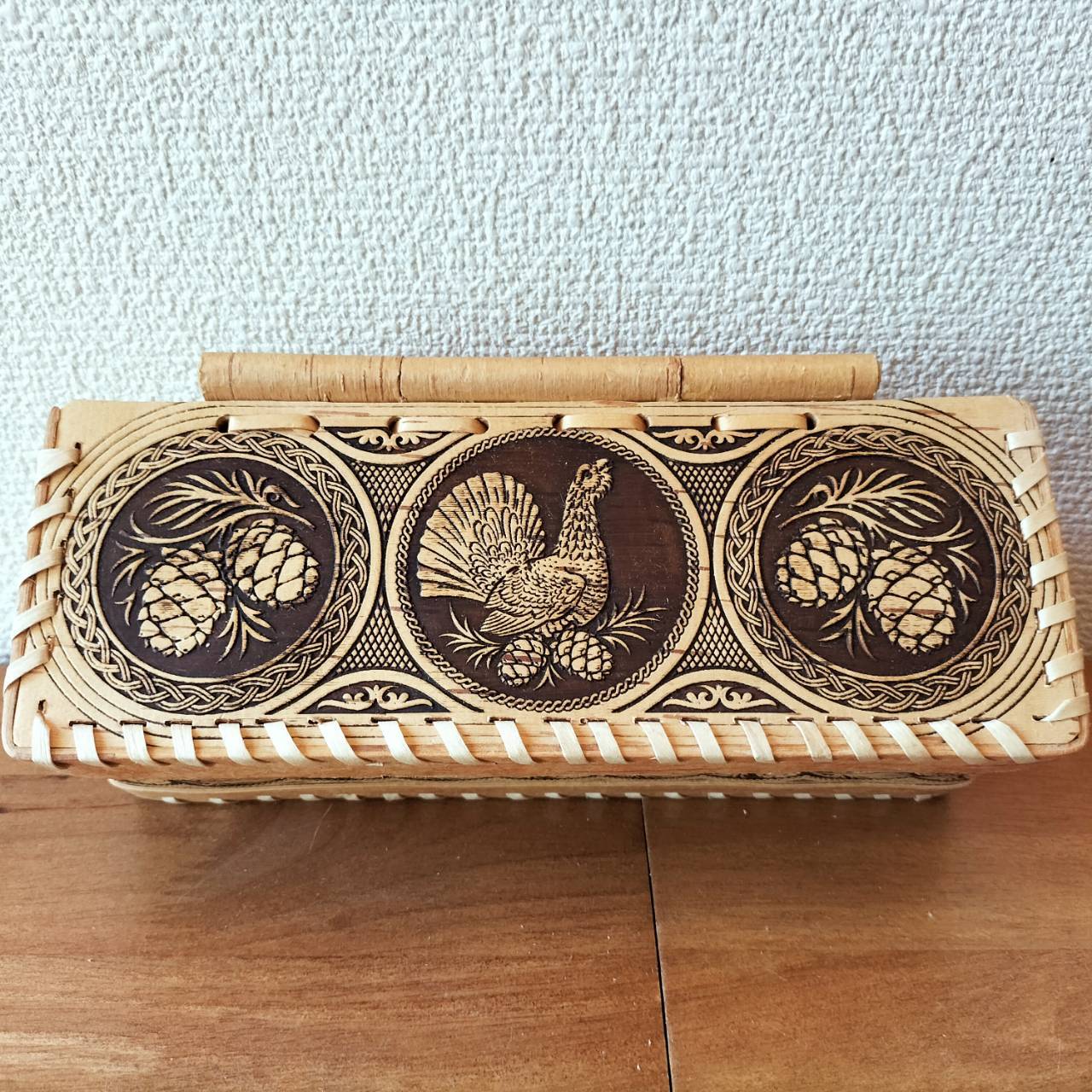 【BE082】北欧ロシア雑貨、ベレスタ・白樺の小物入れ【松ぼっくり】