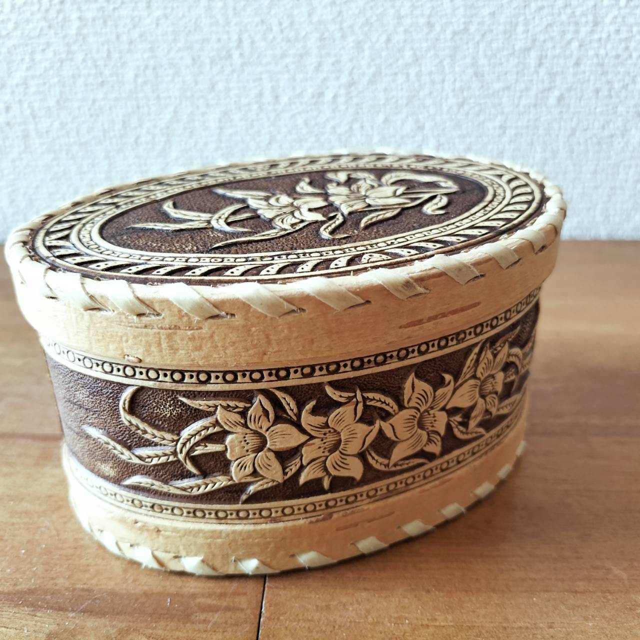 ロシア・北欧の小物入れ、ベレスタです。白樺の真皮で作られている白樺細工です。ベレスタ職人のハンドメイド作品です。