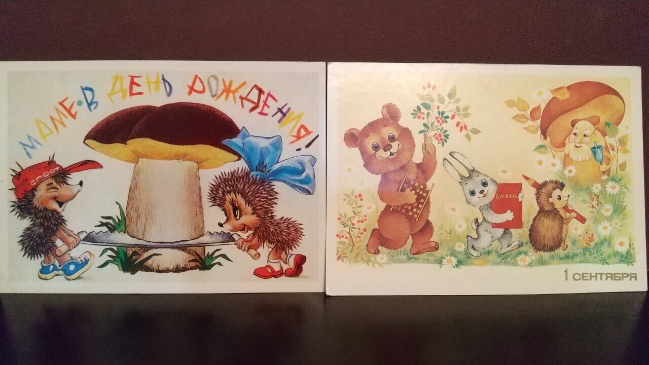 ソ連のヴィンテージ絵葉書です。ハリネズミがモチーフのレトロなポストカードです。2枚セット、バラ売り不可です。