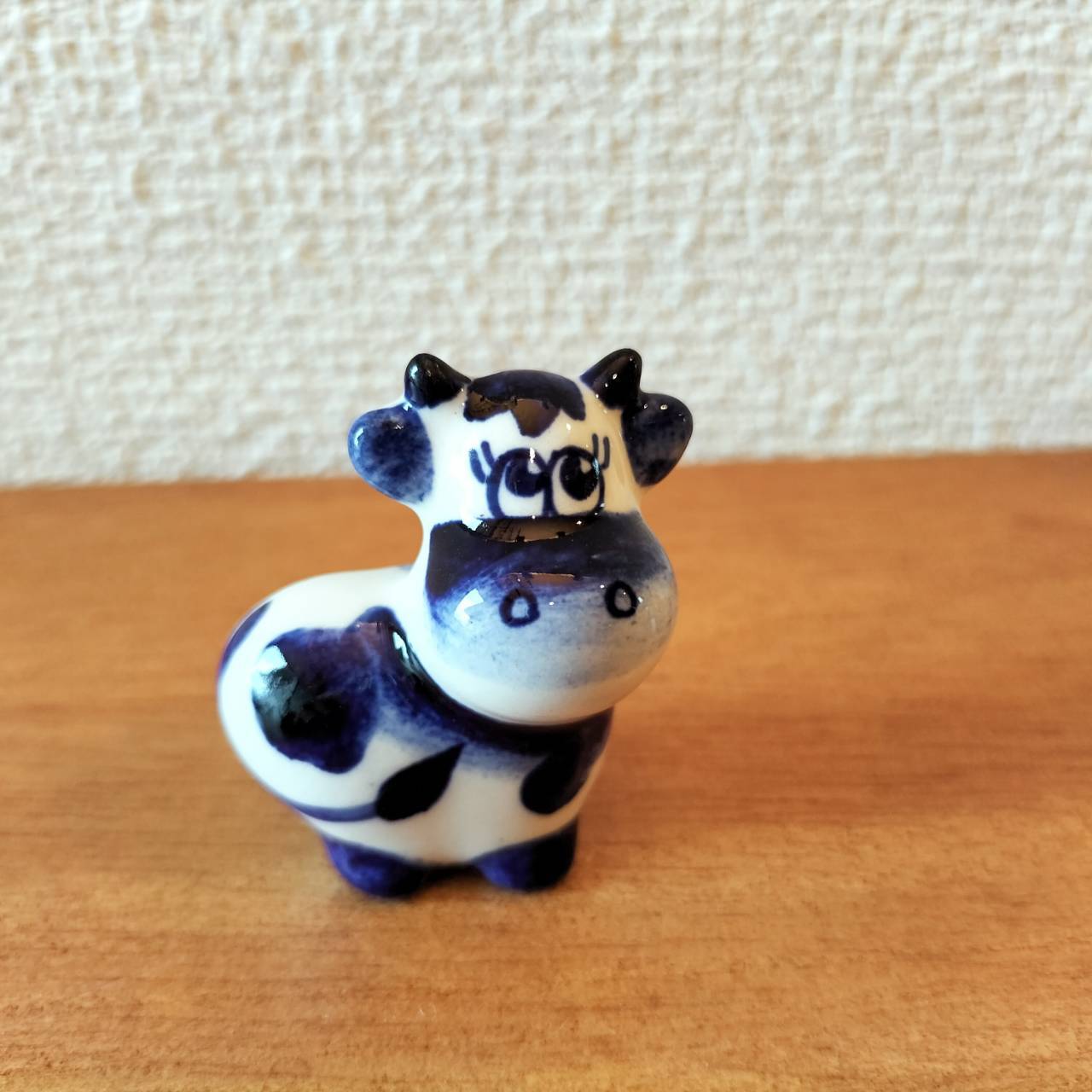 【GZ191】北欧ロシア雑貨 動物陶器 グジェリ焼 【子牛】