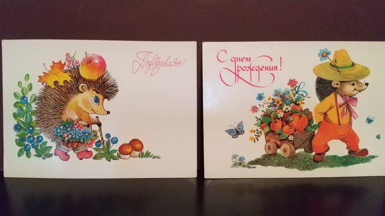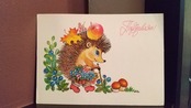 ソ連のヴィンテージ絵葉書です。ハリネズミがモチーフのレトロなポストカードです。