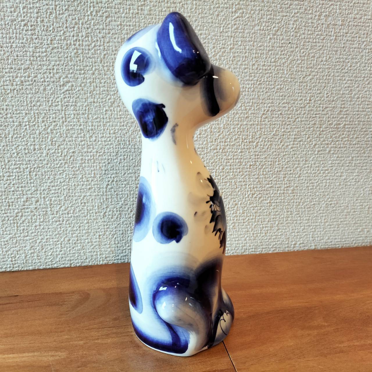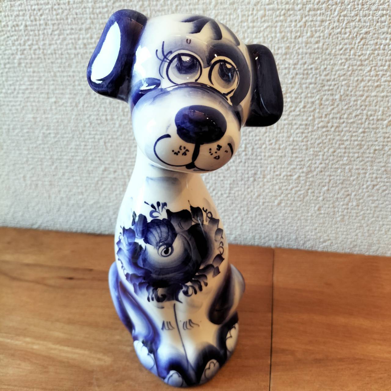 ロシアの伝統陶器、グジェリ焼きです。犬がモチーフになっています。大きな置物です。