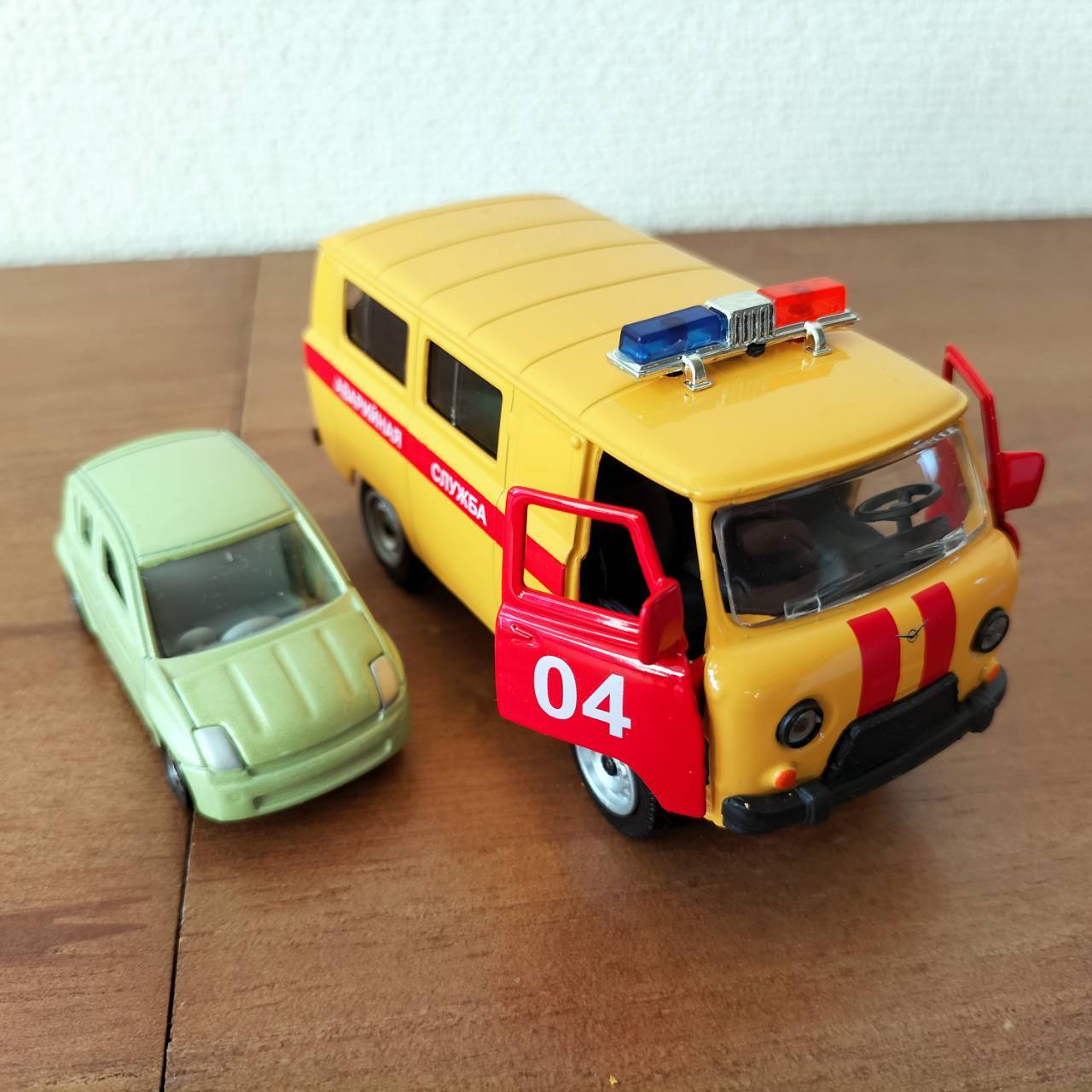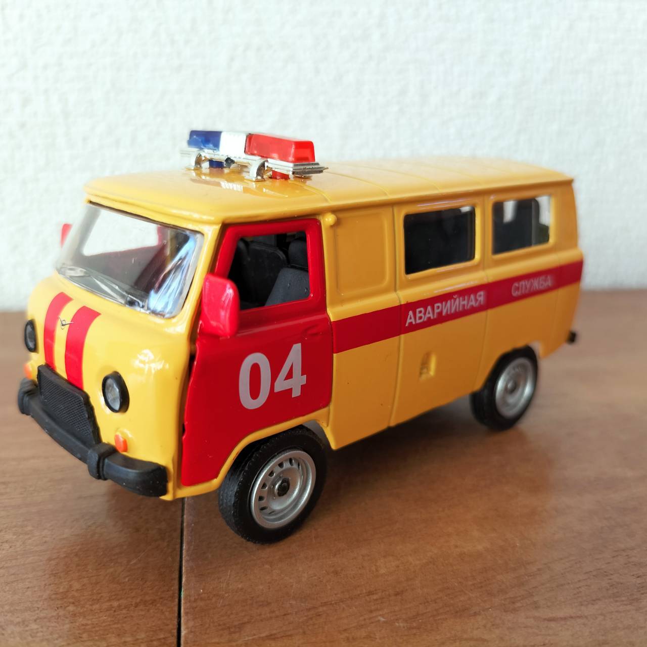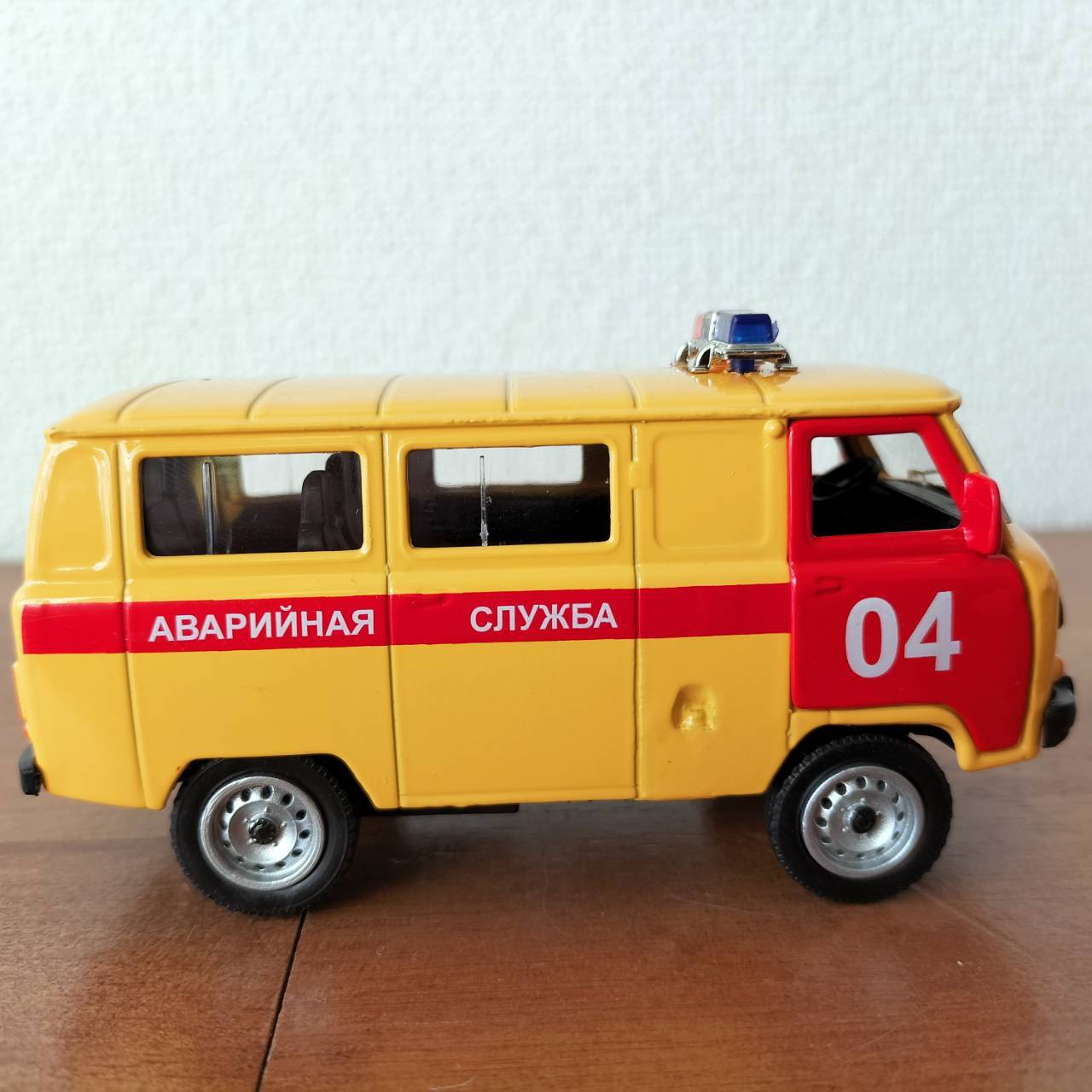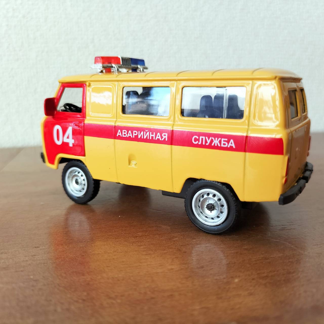 ロシアのミニカー(モデルカー)です。ウリヤノフスク自動車工場(ワズ社 UAZ)の愛称が「ブハンカ」というマイクロバスの車種です。緊急ガス処理班の特殊車両です。