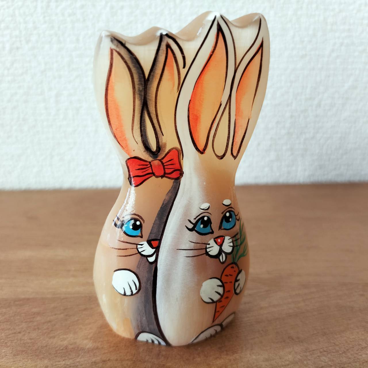 【CEL114】北欧ロシア雑貨の天然石・セレナイト 兄弟うさぎ ウサギ