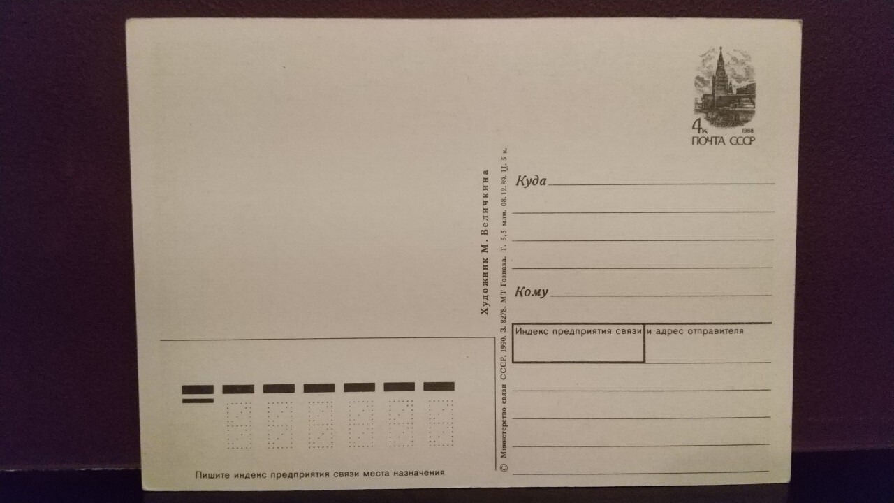 こちらの商品は裏に何も書かれていない未使用の絵葉書となります。ソ連時代当時に未使用のポストカードを選定して収集していたコレクターから直接仕入れました。裏にボールペンや発送済みの消印がある絵葉書に比べて、こちらは希少性が高くなっております。