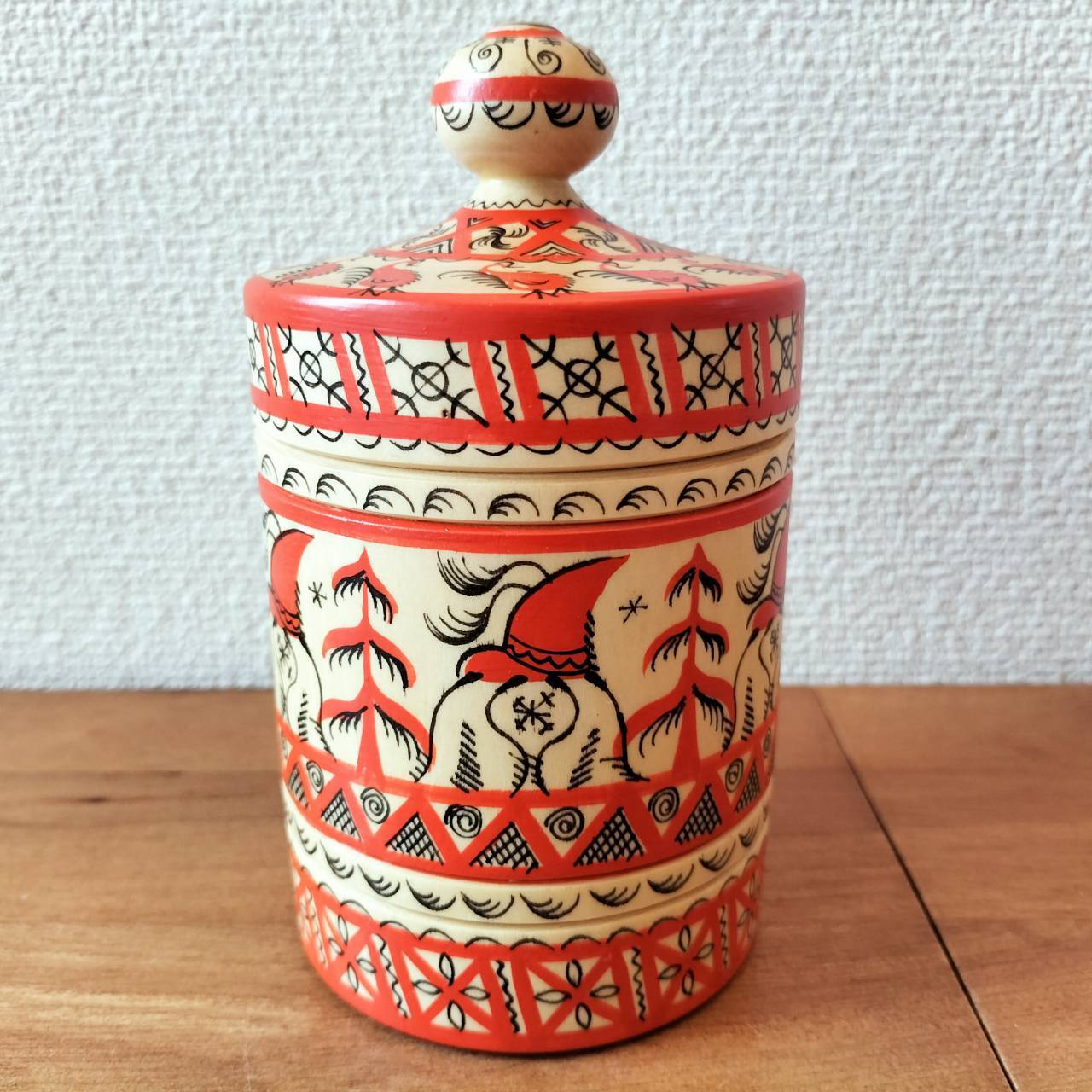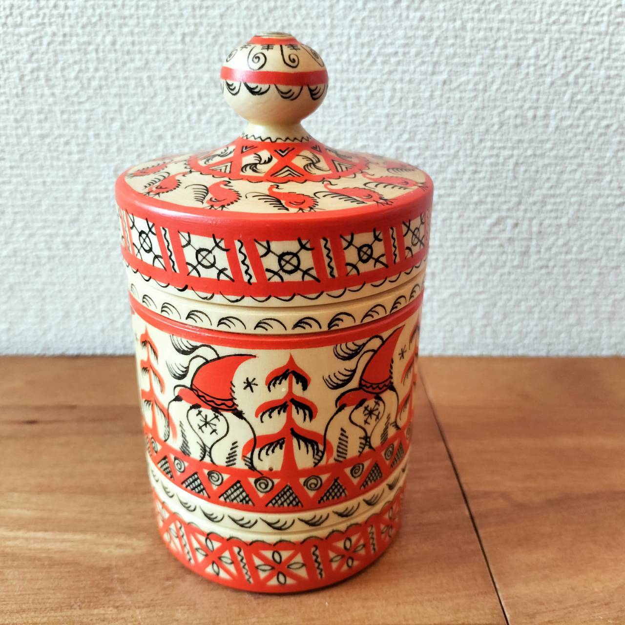 【MZ007】北欧ロシア雑貨、北方アルハンゲリスク伝統工芸品「メゼーニ塗り」