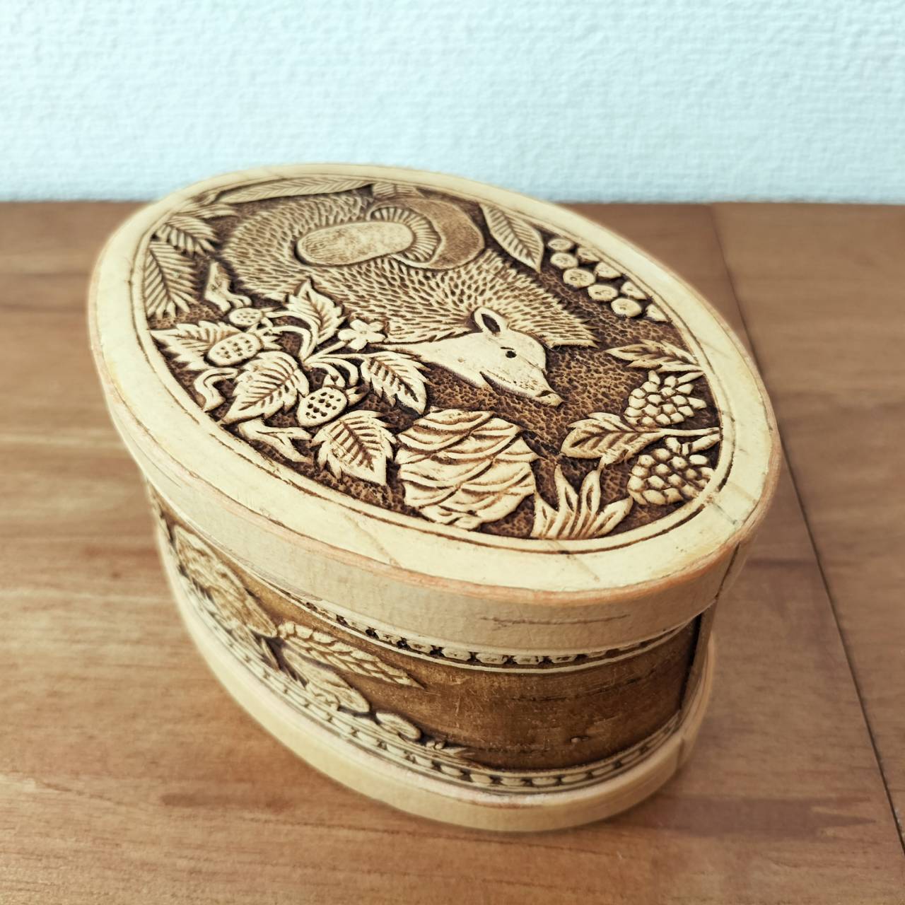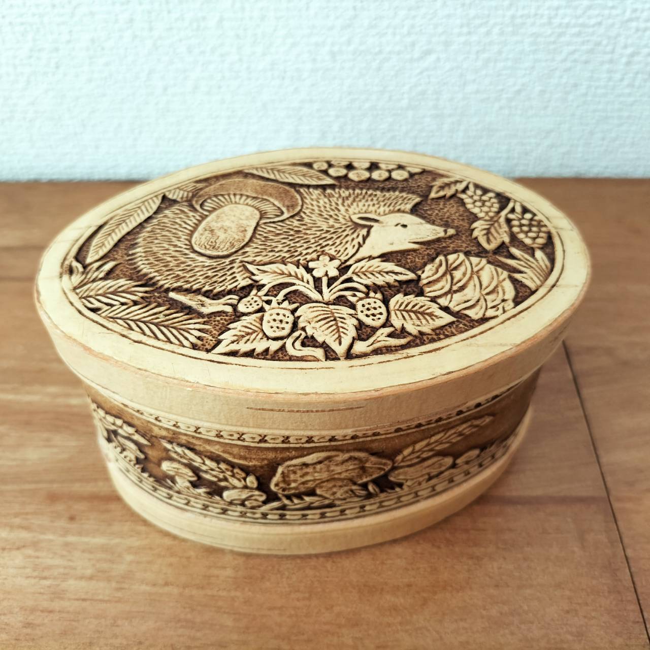 【BE098】北欧ロシア雑貨、ベレスタ・白樺の小物入れ【ハリネズミとキノコ】