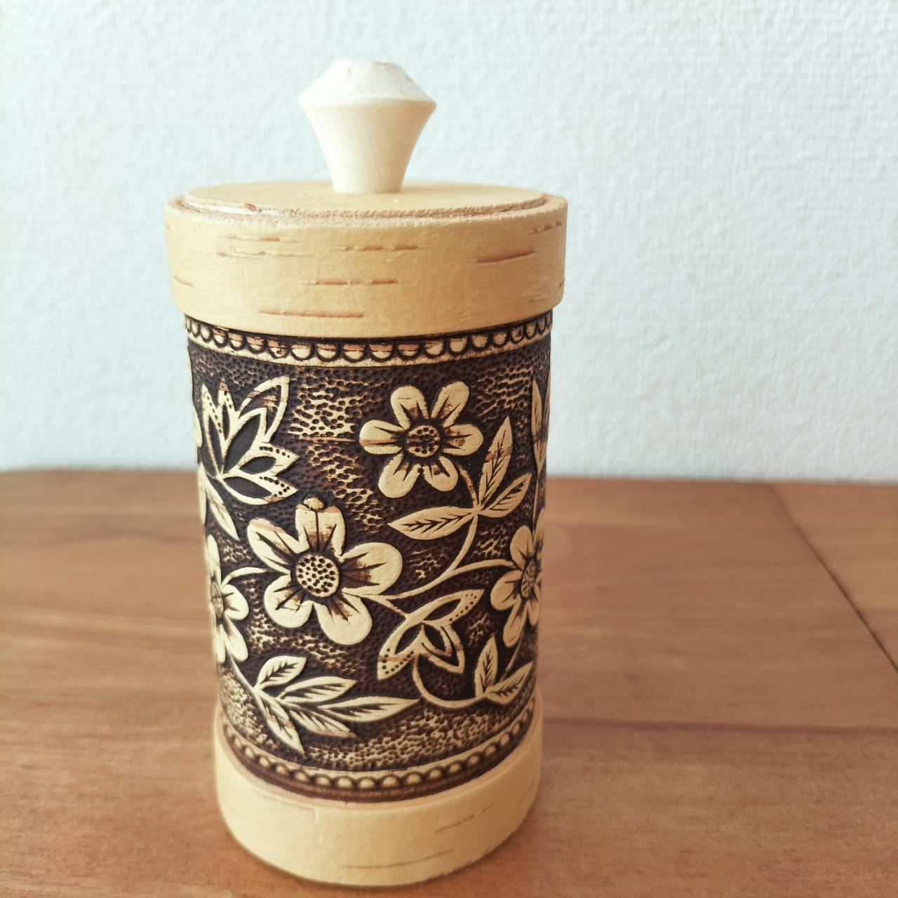 【BE101】北欧ロシア雑貨、ベレスタ・白樺の小物入れ【花】