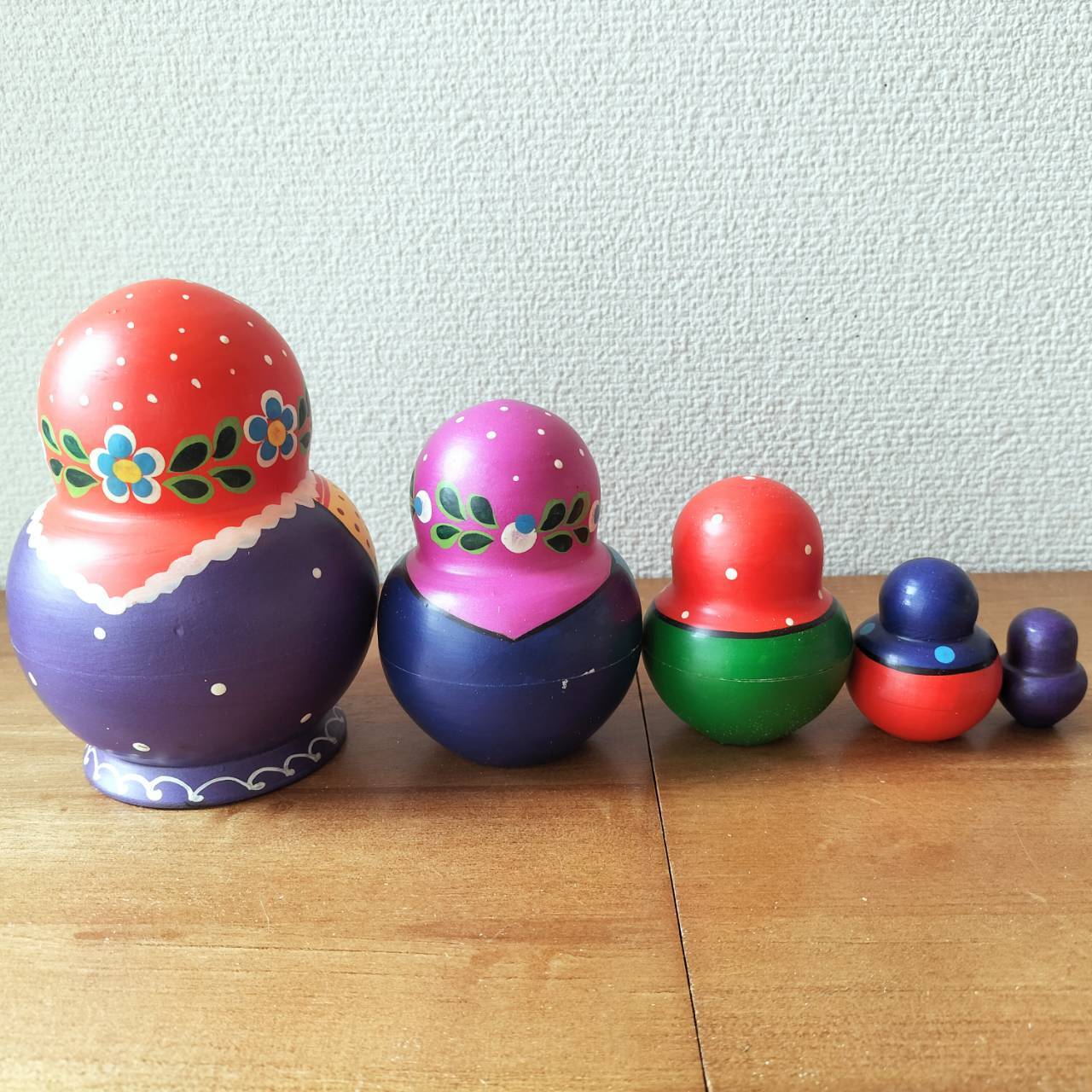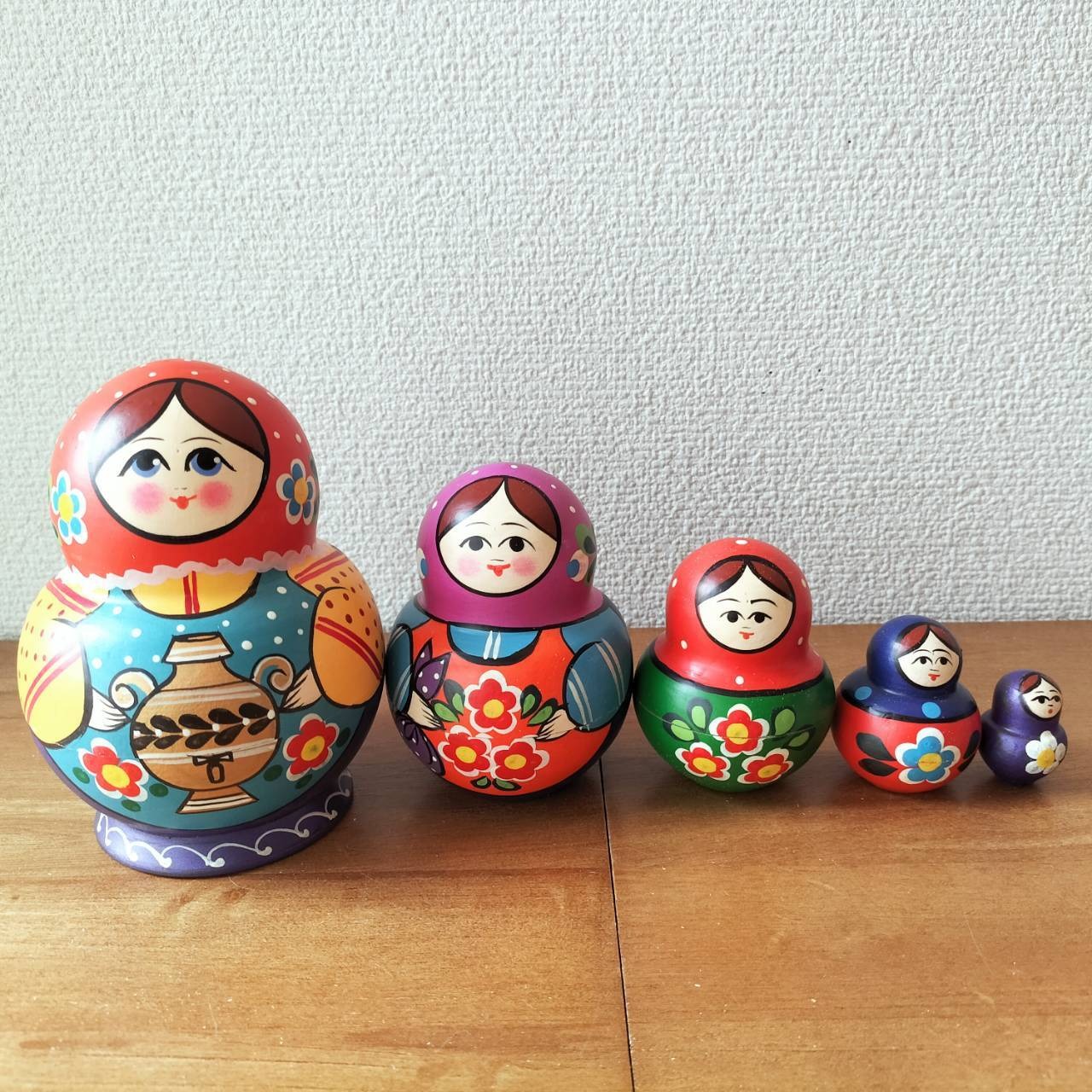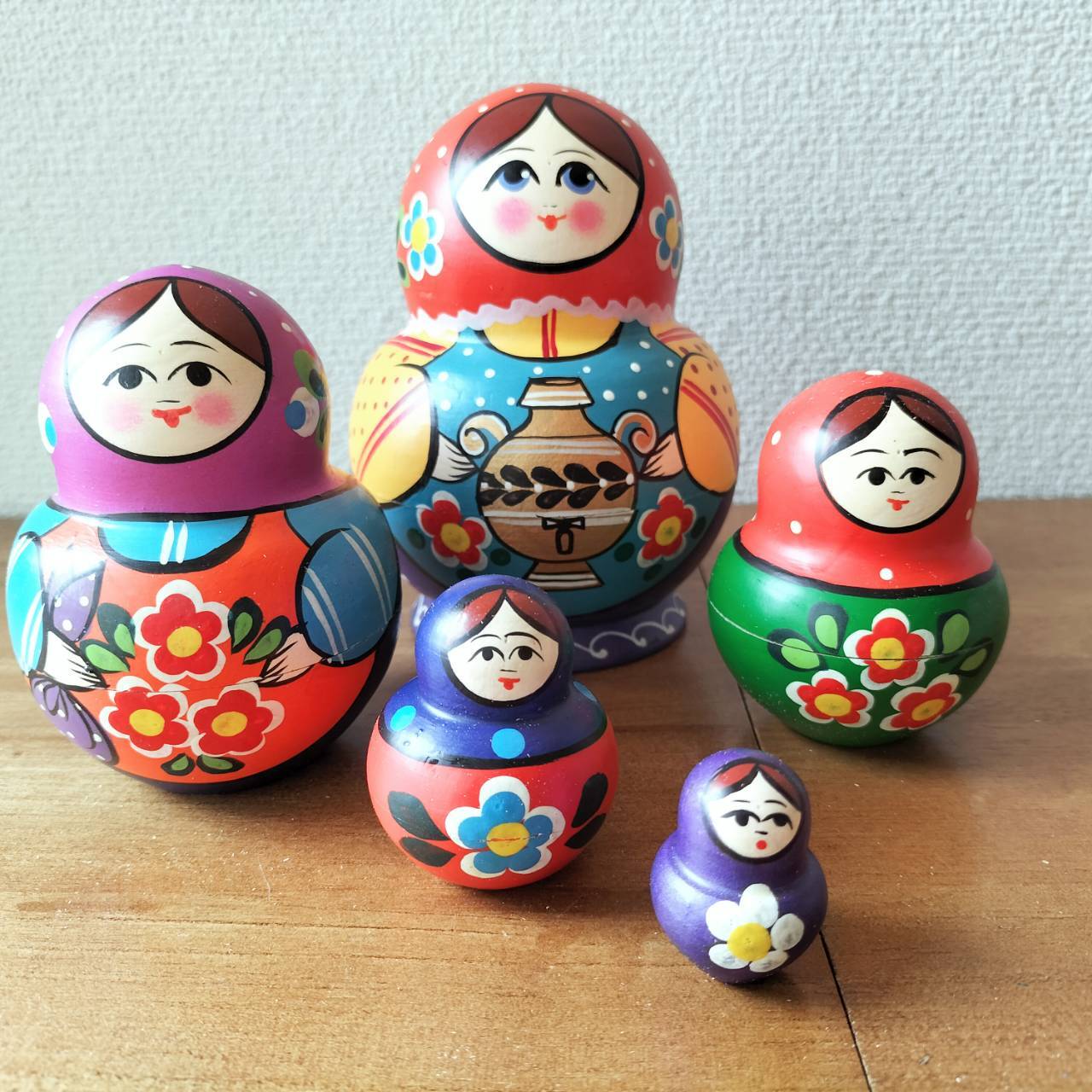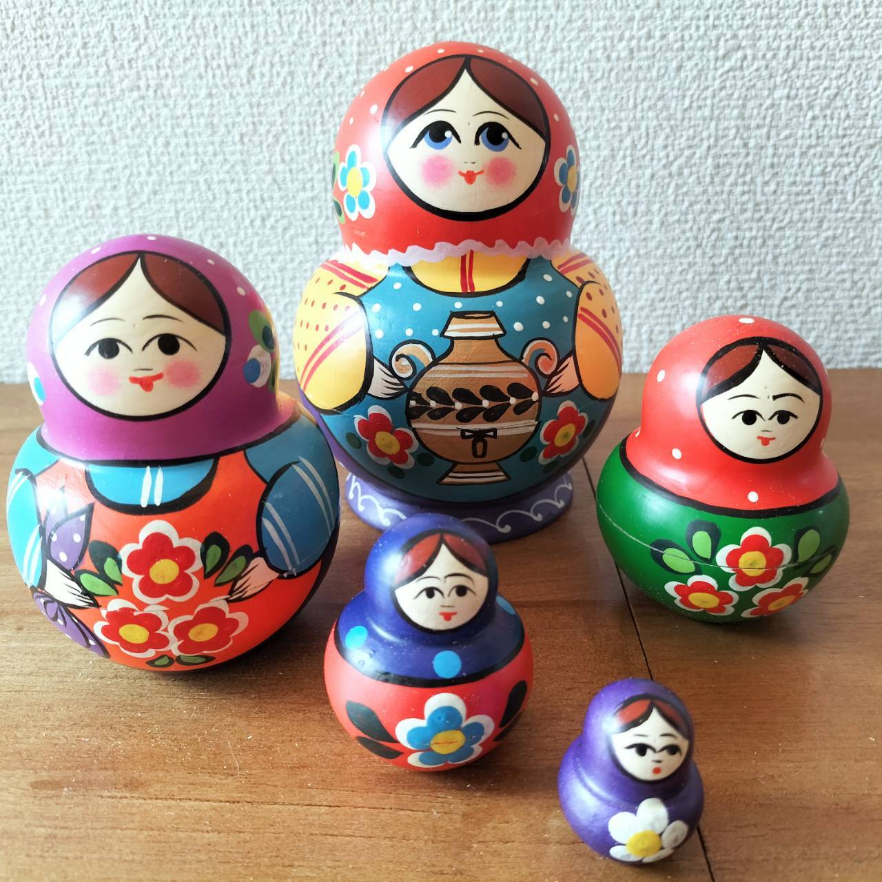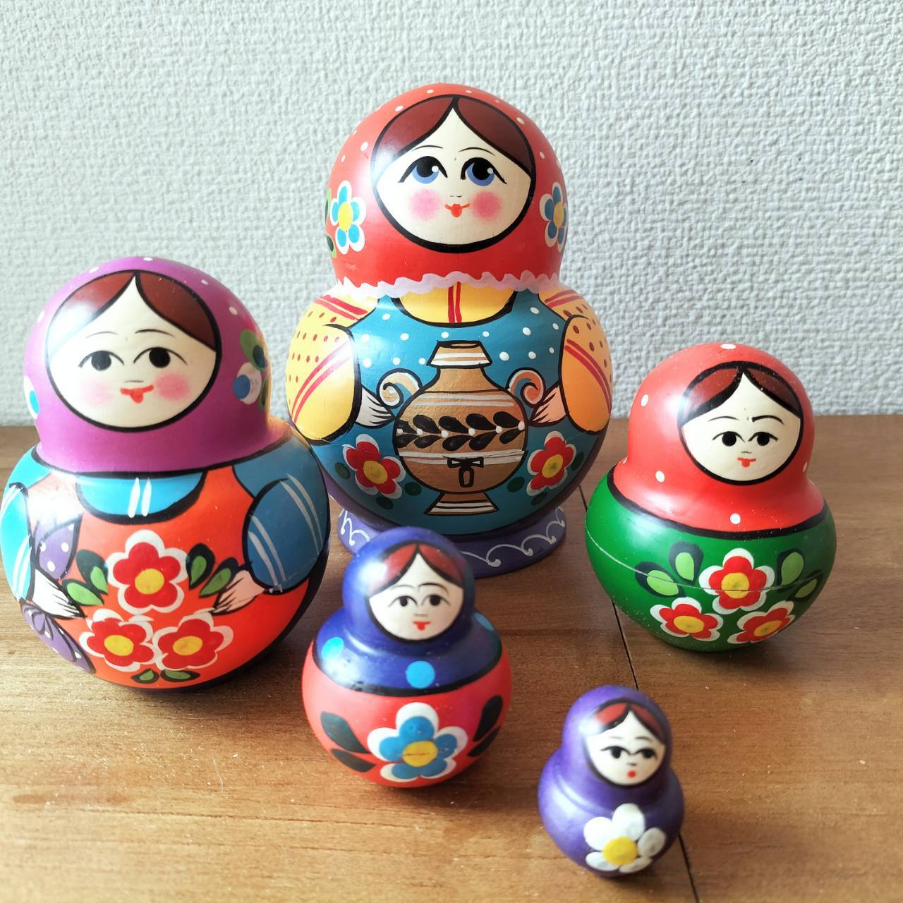 ロシアの職人さんによるハンドメイドの作品です。ロシア伝統の原色系べた塗りのカラフルな木製工芸品・マトリョーシカです。自然木の香りがします。