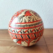 ロシア最北のアルハンゲリスク州の都市群に伝わる北方民族の伝統工芸品です。メゼーニ塗りには動物が描かれており、赤色は生命の躍動や太陽を表しています。