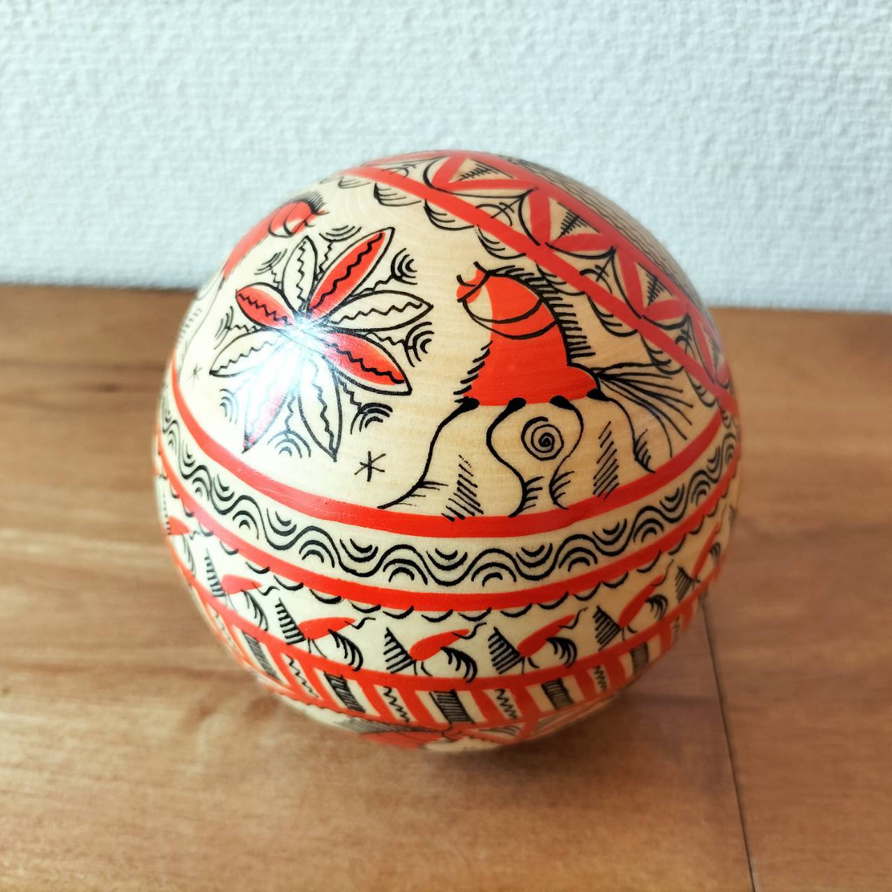 【MZ009】北欧ロシア雑貨、北方伝統工芸品「メゼーニ塗り」起き上がりこぼし