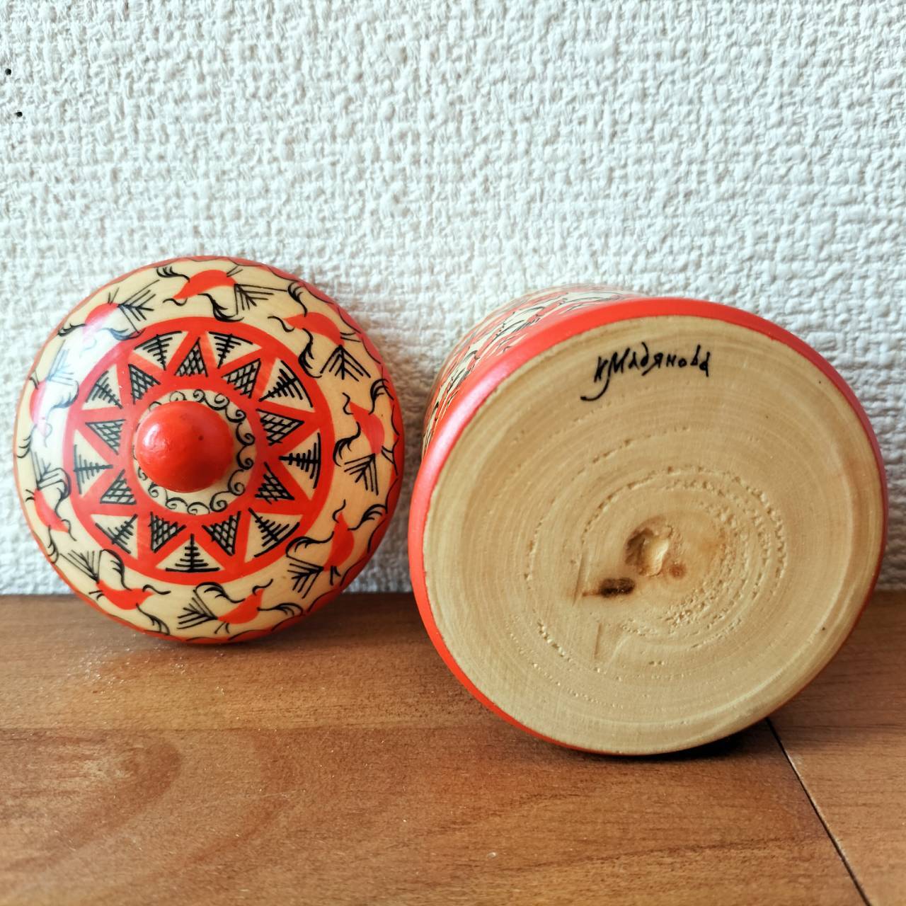 【MZ010】北欧ロシア雑貨、北方アルハンゲリスク伝統工芸品「メゼーニ塗り」