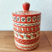 ロシア最北のアルハンゲリスク州の都市群に伝わる北方民族の伝統工芸品です。メゼーニ塗りには動物が描かれており、赤色は生命の躍動や太陽を表しています。