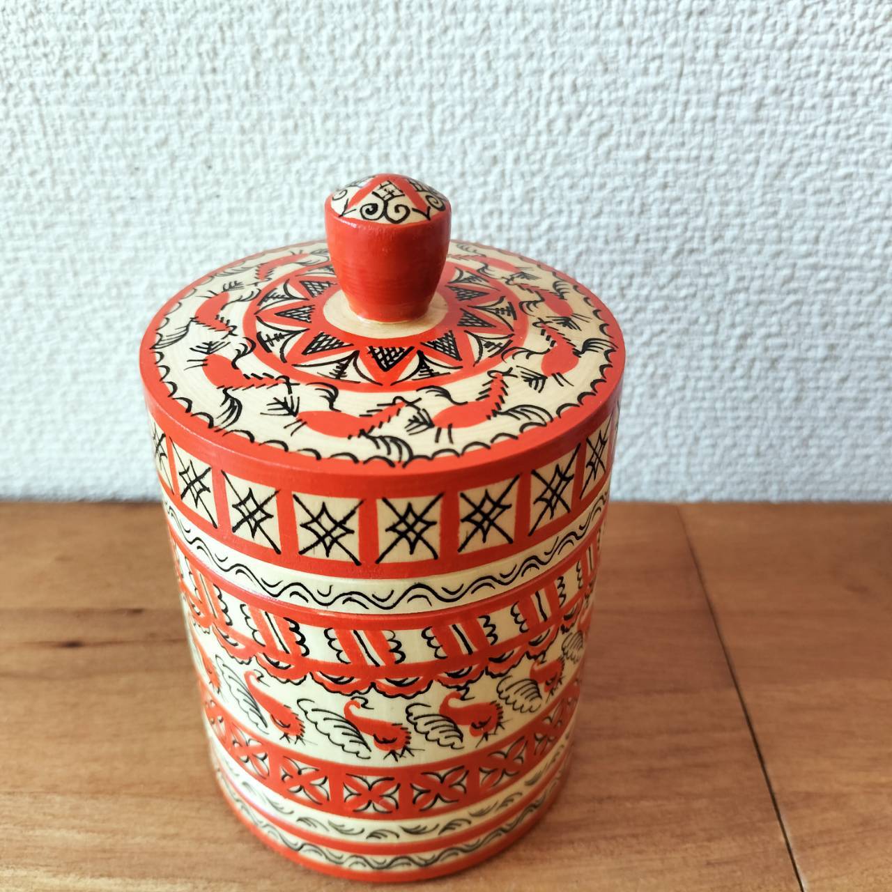 【MZ011】北欧ロシア雑貨、北方アルハンゲリスク伝統工芸品「メゼーニ塗り」