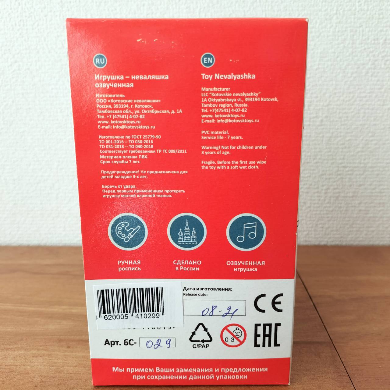 起き上がり小法師のレトロバージョン(復刻版)です。倒すと縦横左右に揺れ続けます。カランコロンと涼しげな鈴の音色がします。GOST基準というロシア国内の厳しい基準を通過した製造玩具です。