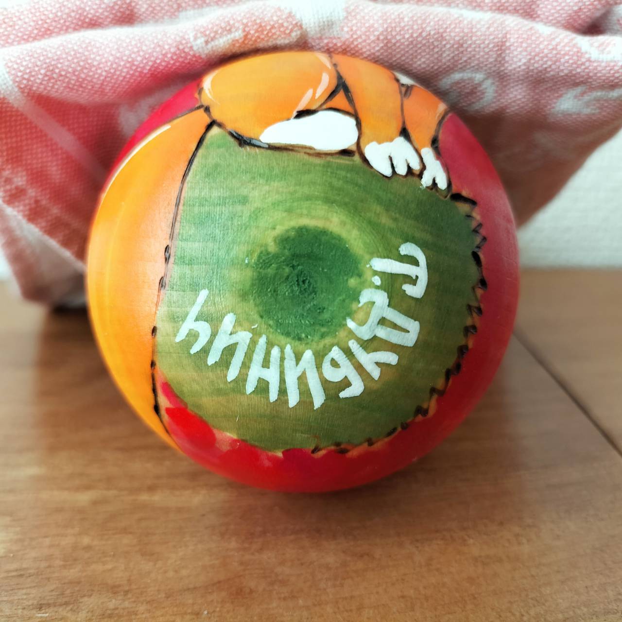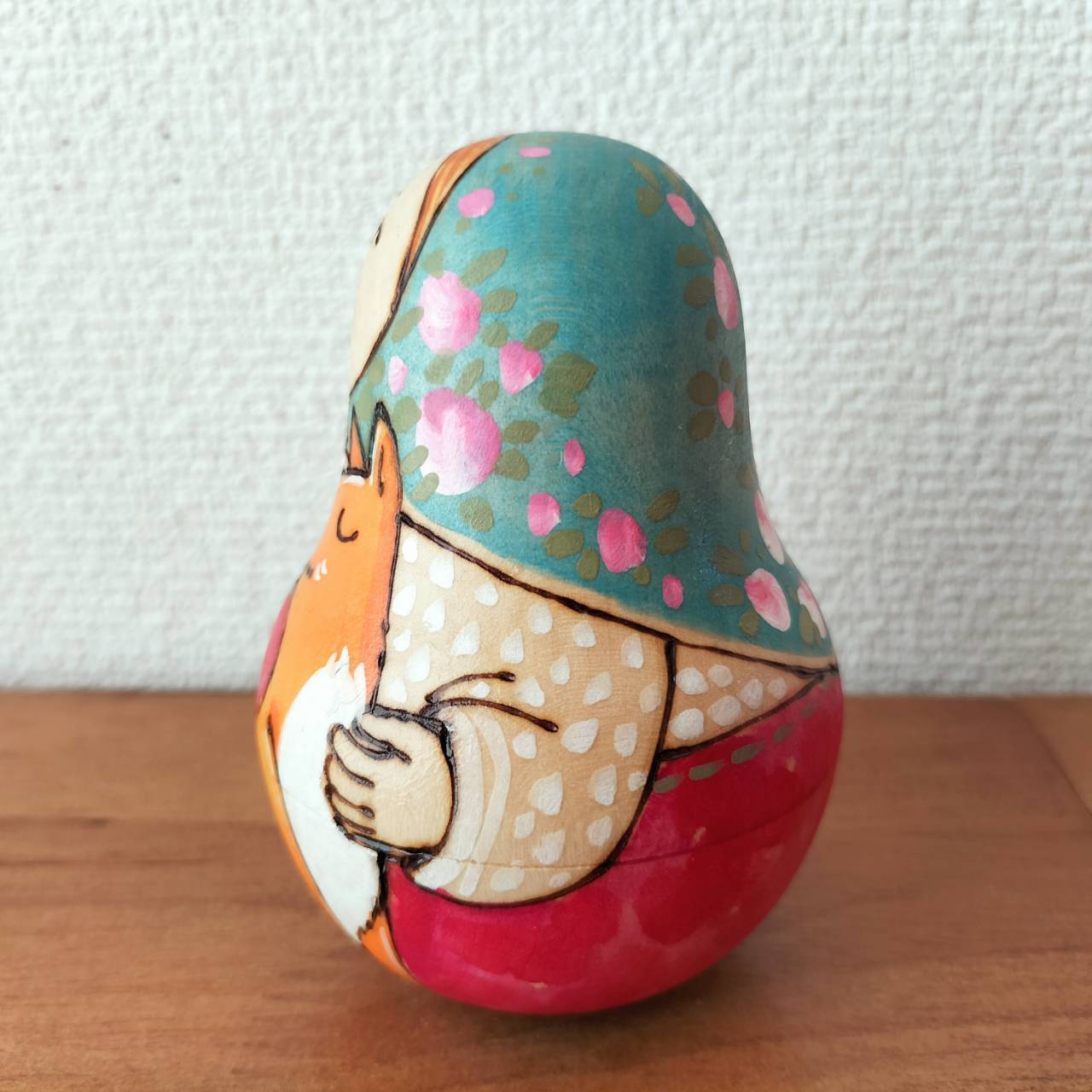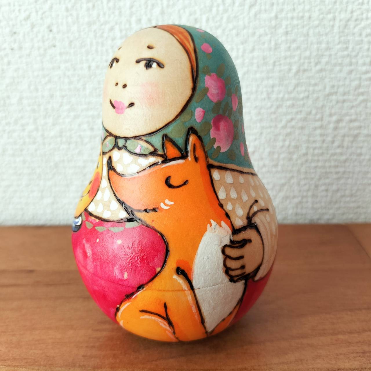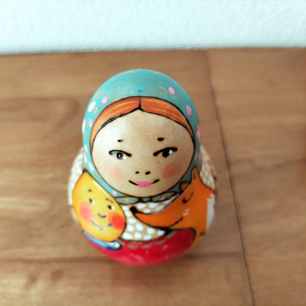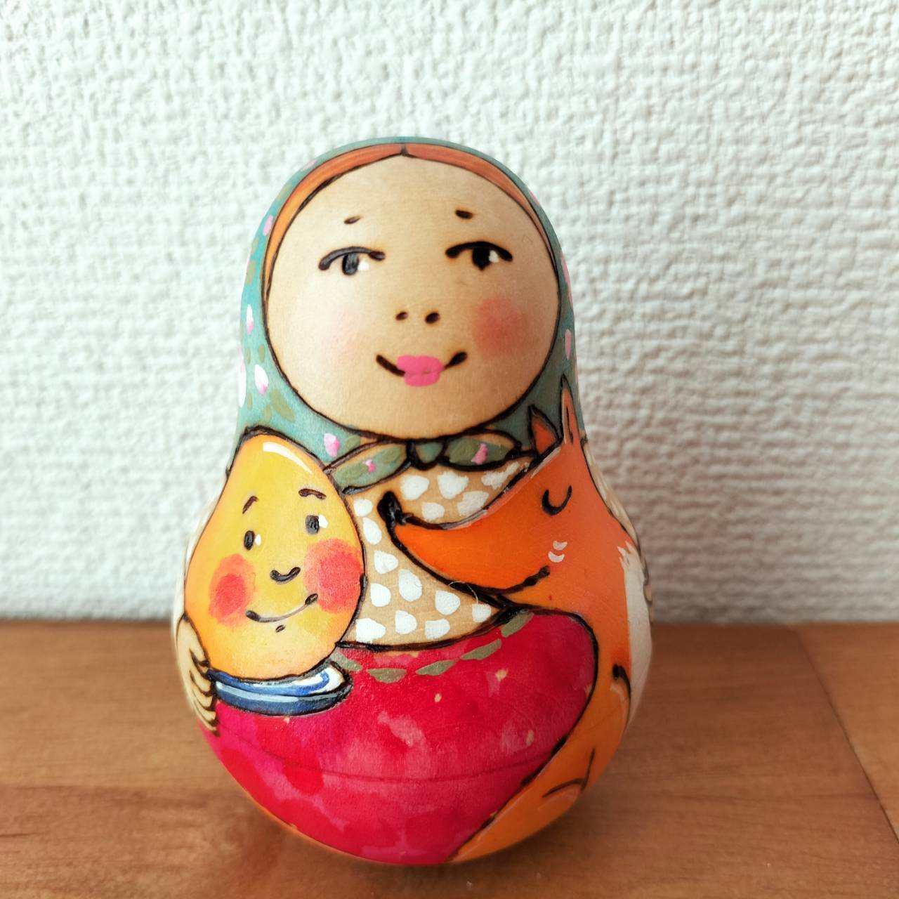 ロシアでとても有名なタチヤナ・ドゥビニッチさんという作家の起き上がりこぼしです。前後左右に転がすと、カランコロンと音が出て、元の位置に戻ります。