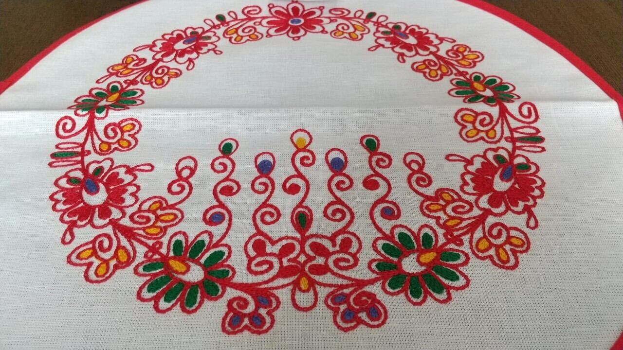 アルハンゲリスクの伝統工芸品である刺繍は赤色がアクセントとなっていて、とても可愛らしいです。こちらのテーブルマットは通常のものとは異なりベースとなる生地が明るいホワイト色で珍しい色合いのものです。テーブルの真ん中に敷くだけでお部屋全体に明るく綺麗な印象を持たせてくれます。