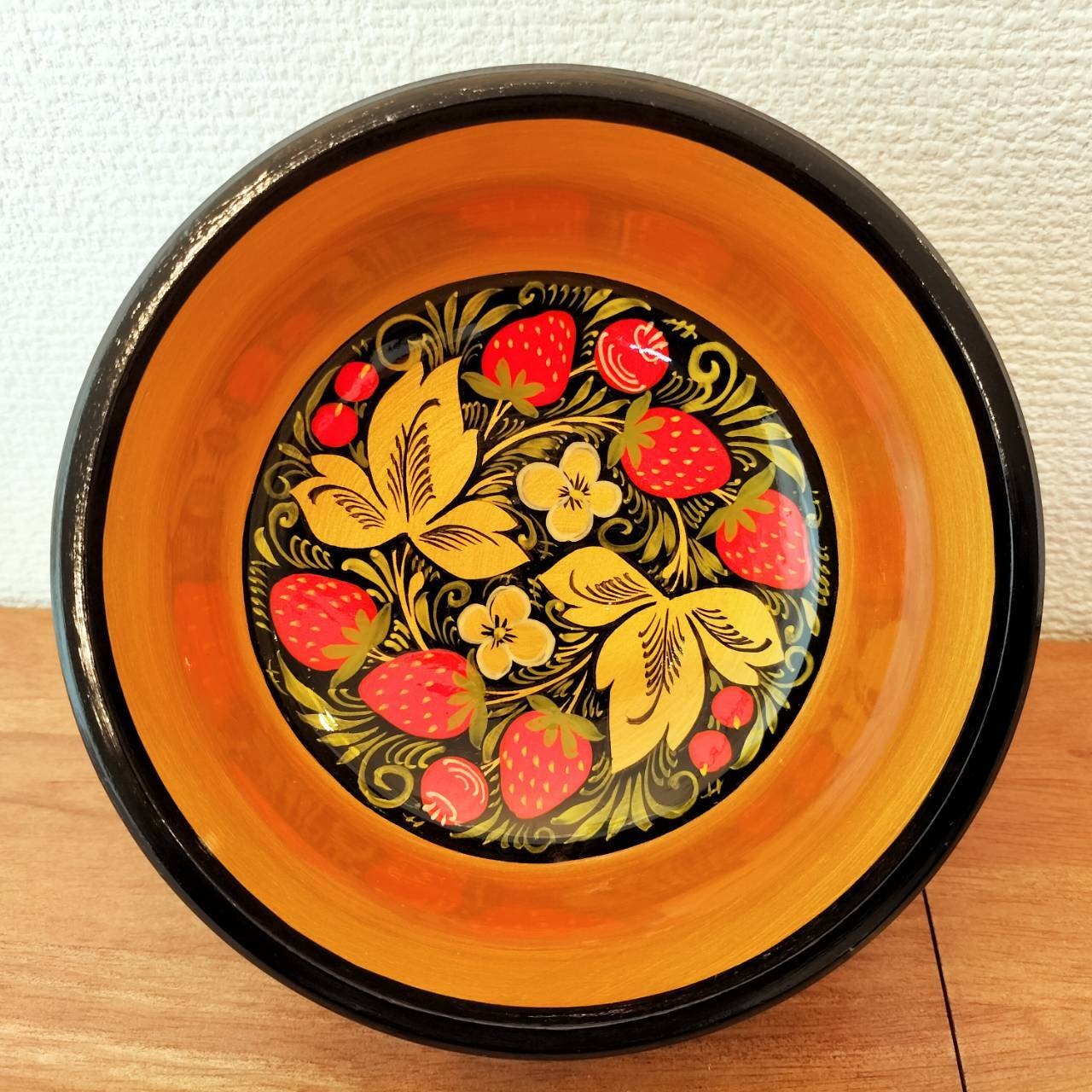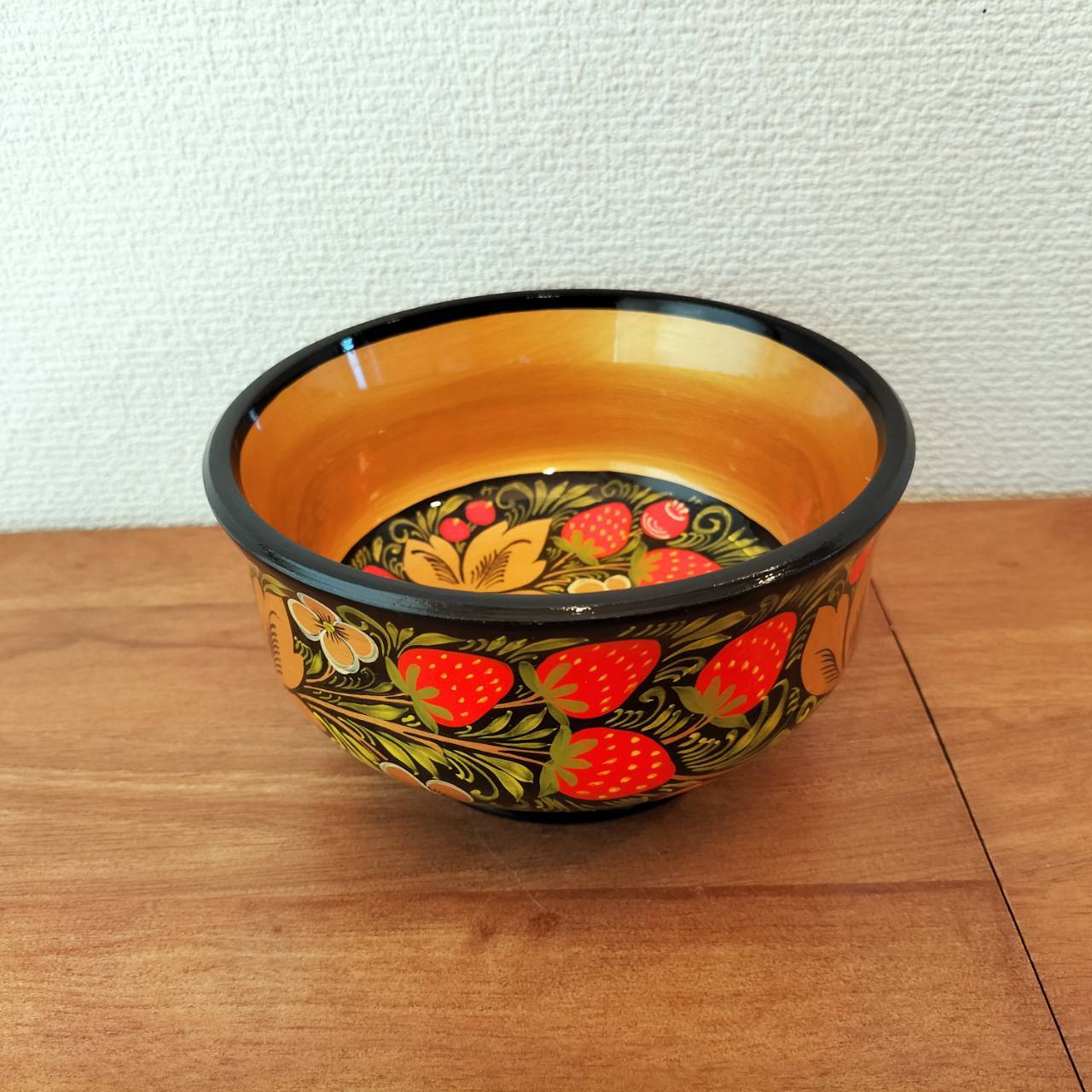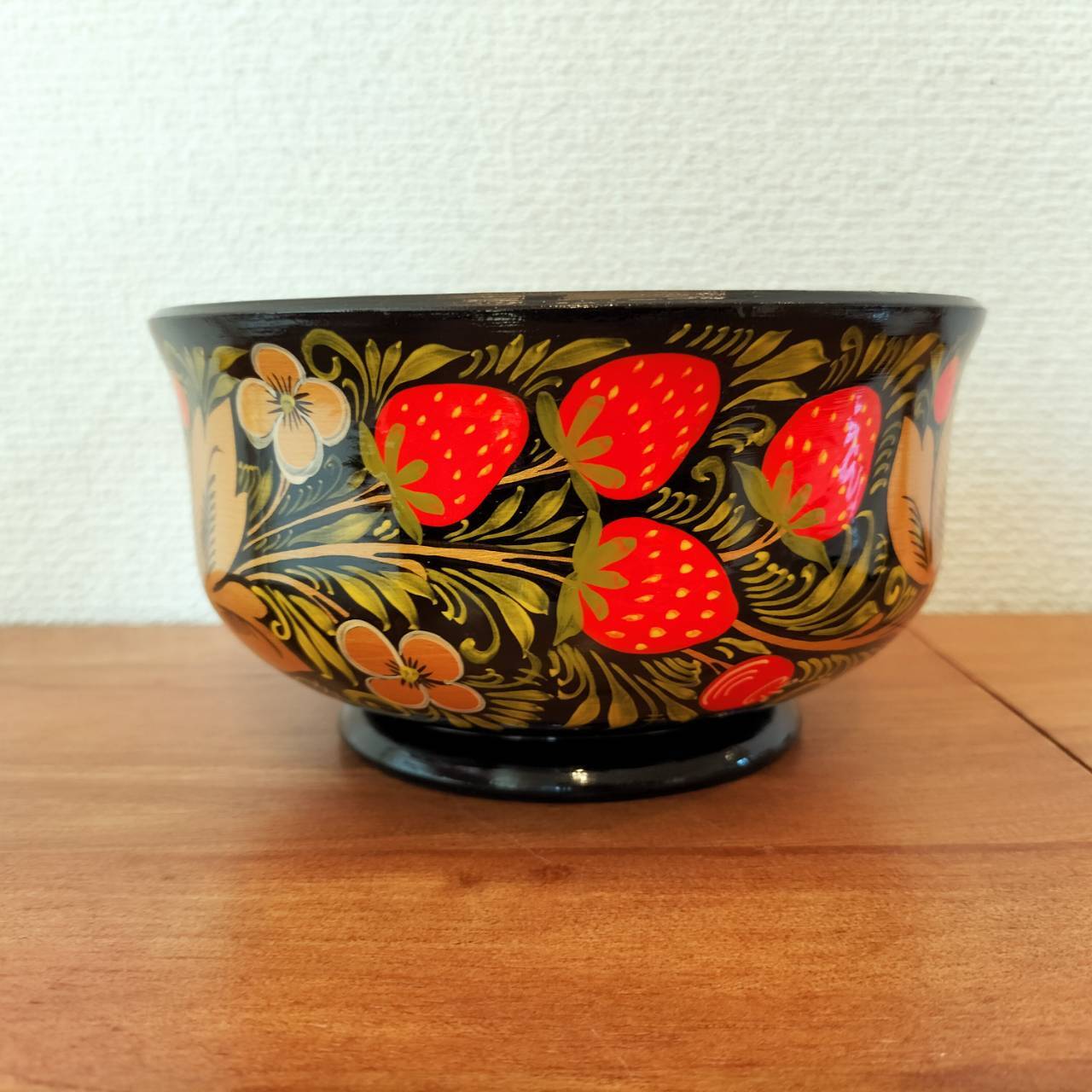 ホフロマには必ずイチゴが伝統的な描法で描かれており、当商品はロシア人の職人が一つ一つハンドメイドで手描きしたホフロマの一つです。
