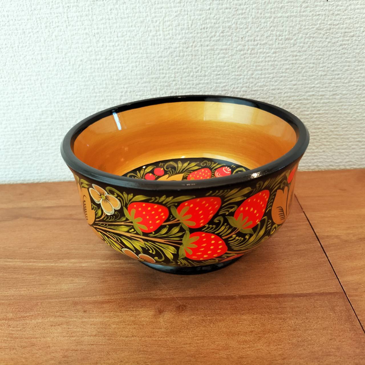 ロシアの主要な伝統工芸品であるホフロマ塗の小鉢、入れ物です。ホフロマ村という地域が発祥の民芸品です。