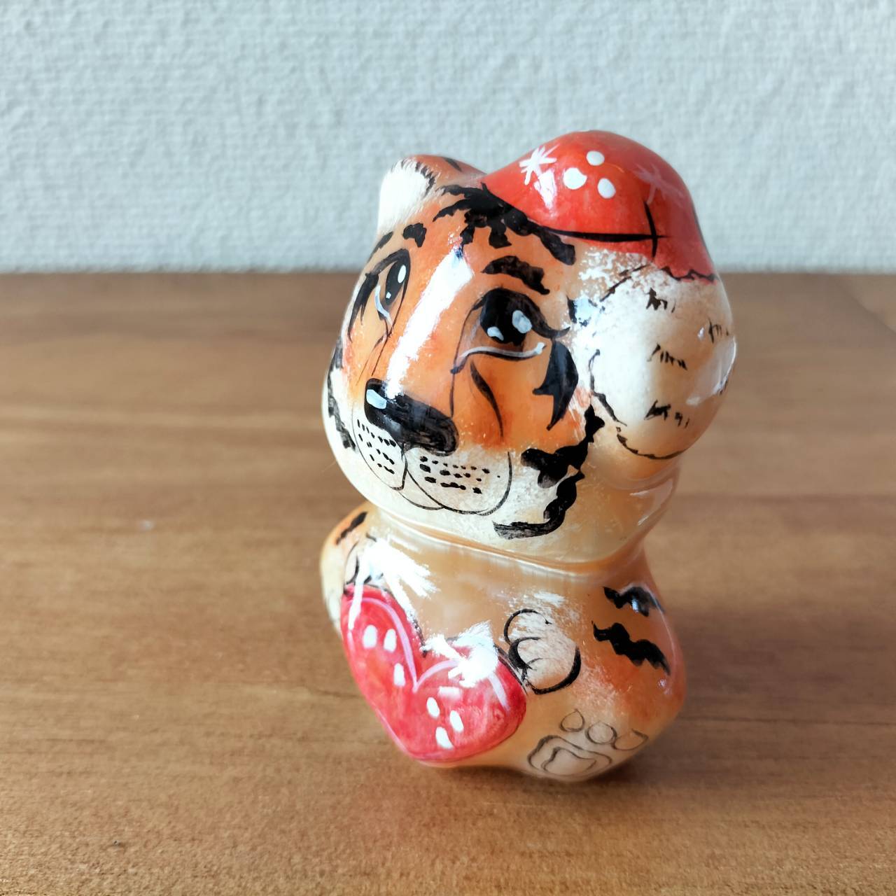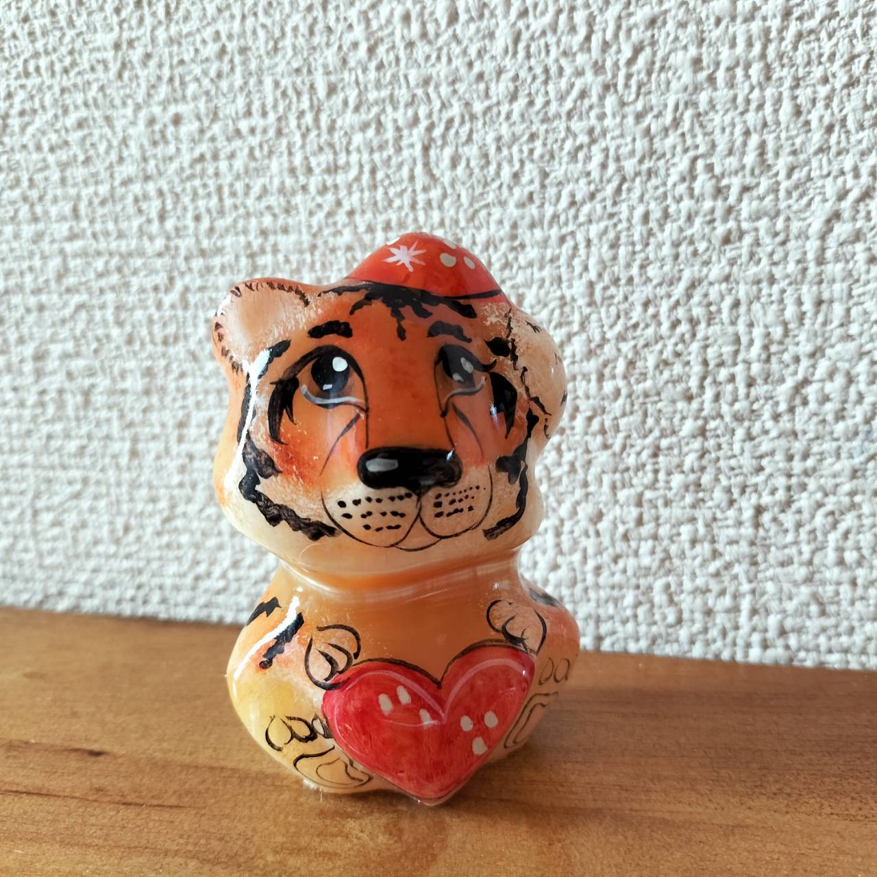 【CEL107】北欧ロシア雑貨の天然石・セレナイト ハートを持つトラ