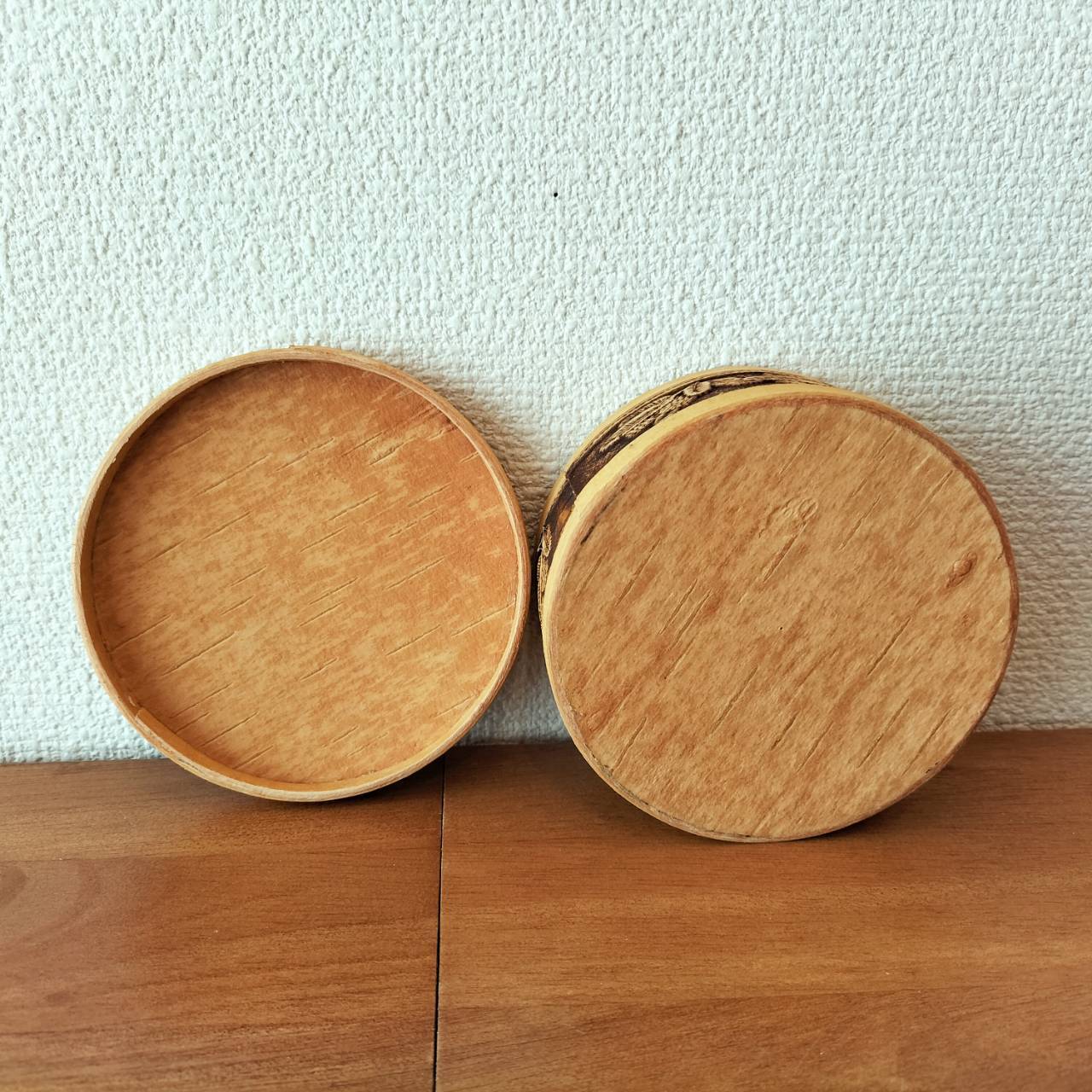 ①素材:白樺の真皮、木