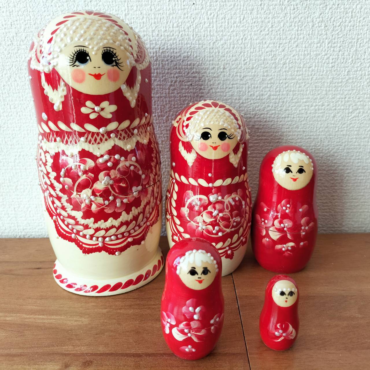 【MTP080】北欧ロシア雑貨のマトリョーシカ 【グジェリ焼(赤)】