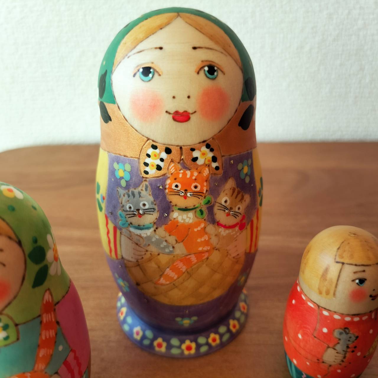 【LYH053】 北欧ロシア雑貨、マトリョーシカ【3匹のネコ】リューバ作