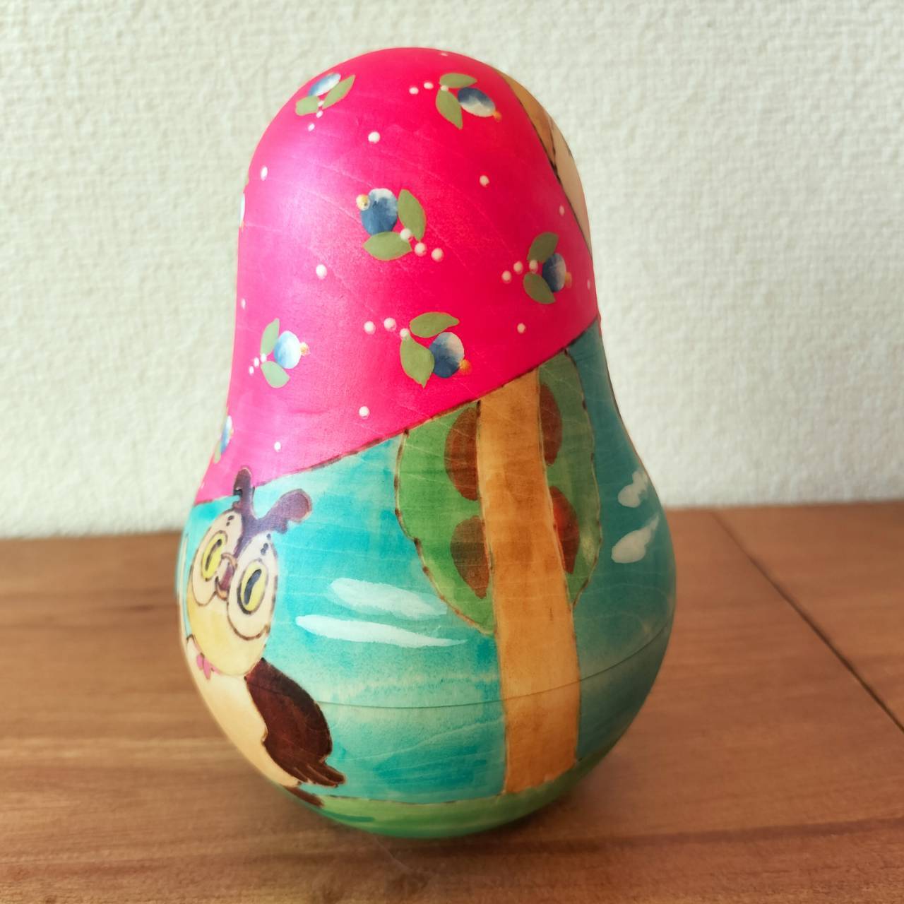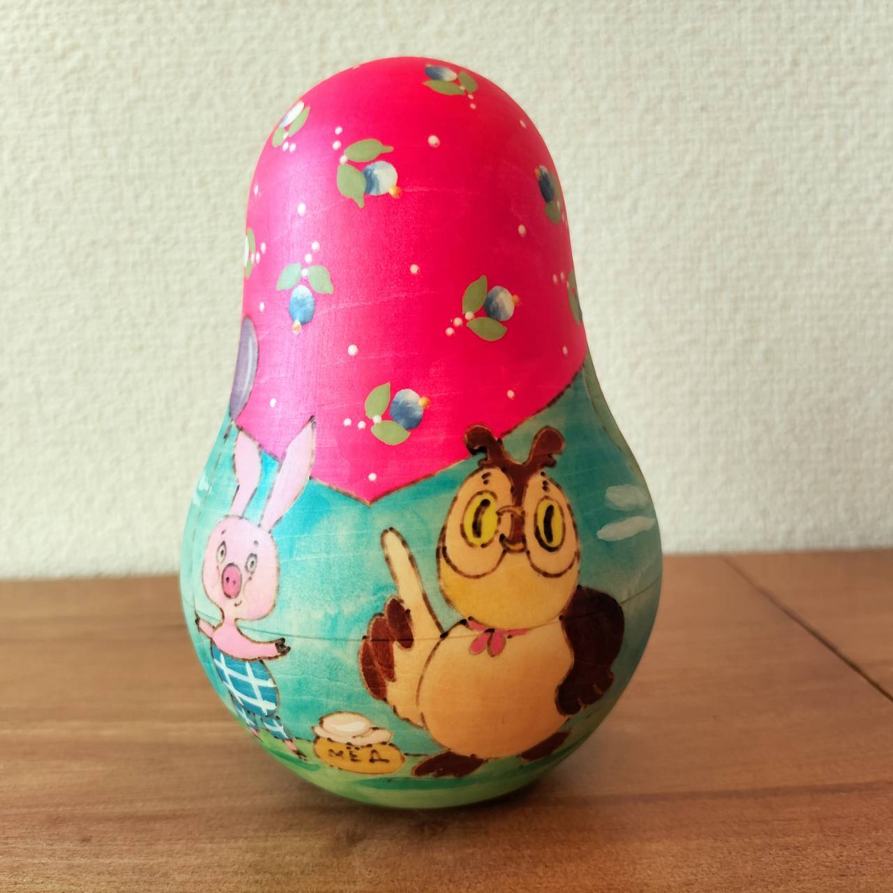 ロシアで有名なナジェージダ・リュボーフィ親子という親子作家のウィンニープーフの起き上がりこぼしです。前後左右に揺らすとカランコロンと鈴の音が鳴り続けます。