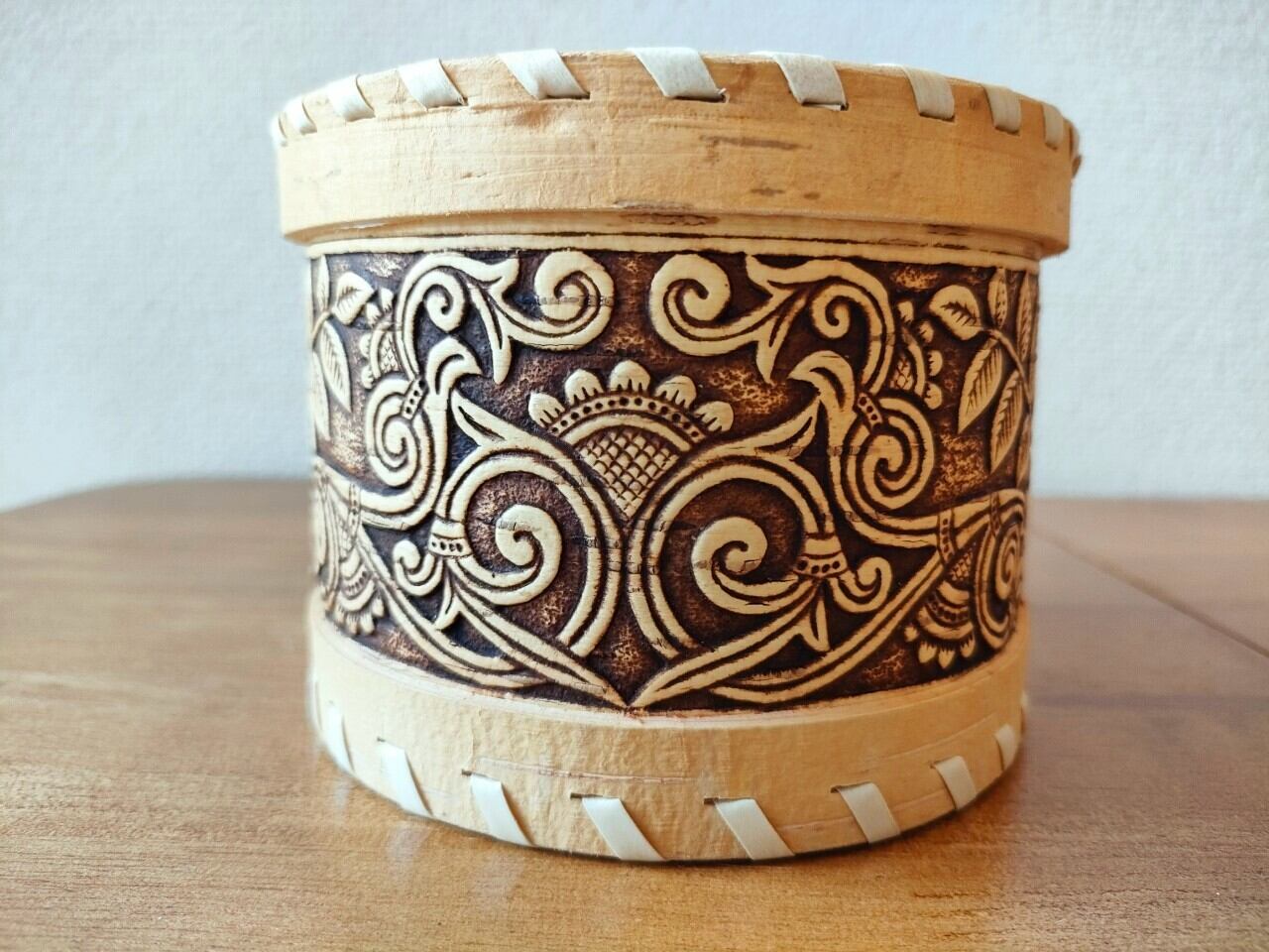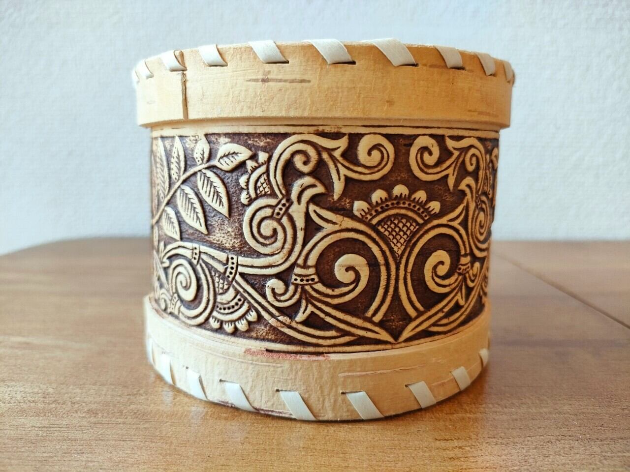 ロシア・北欧の小物入れ、ベレスタです。白樺の真皮で作られている白樺細工です。