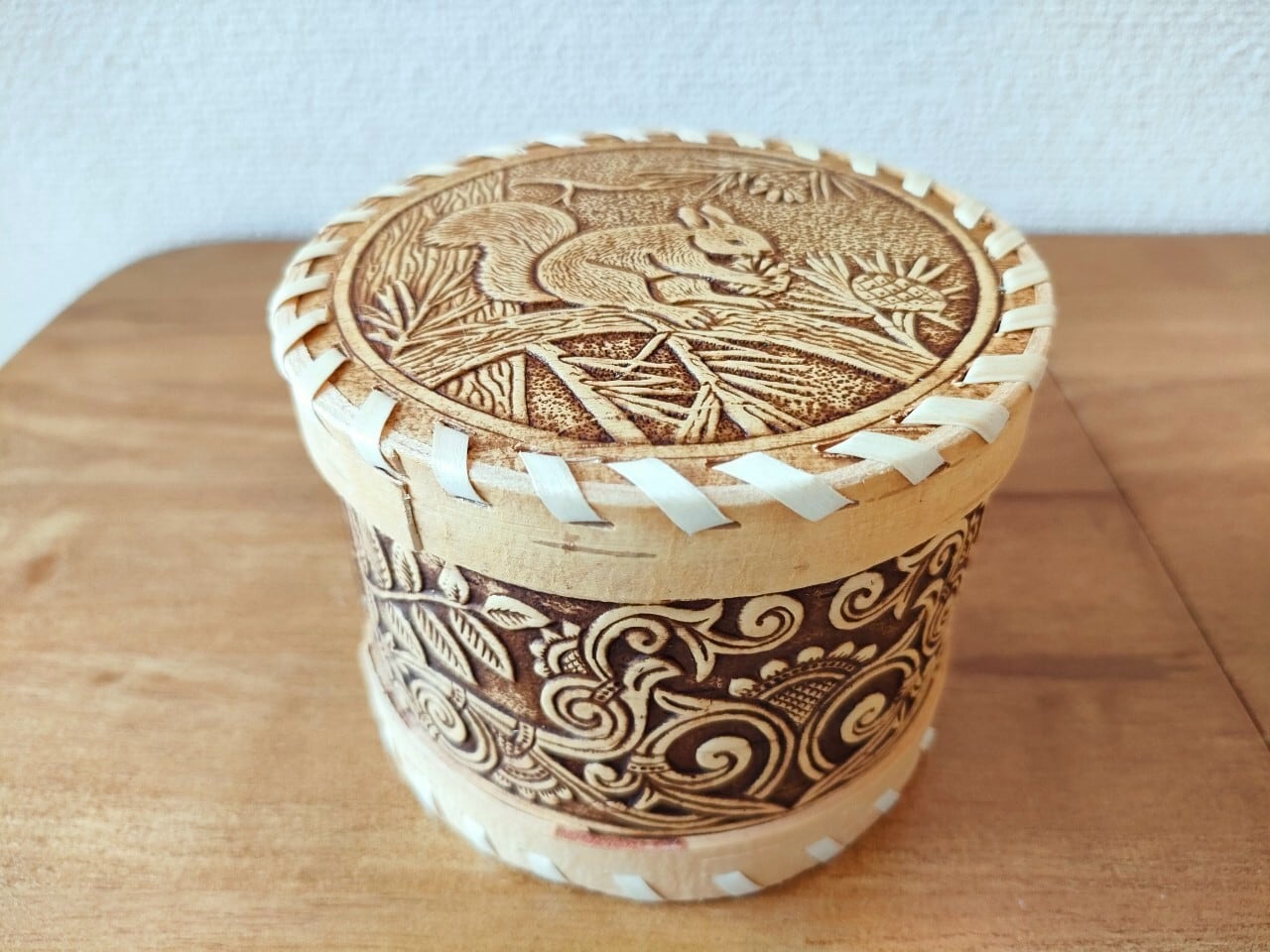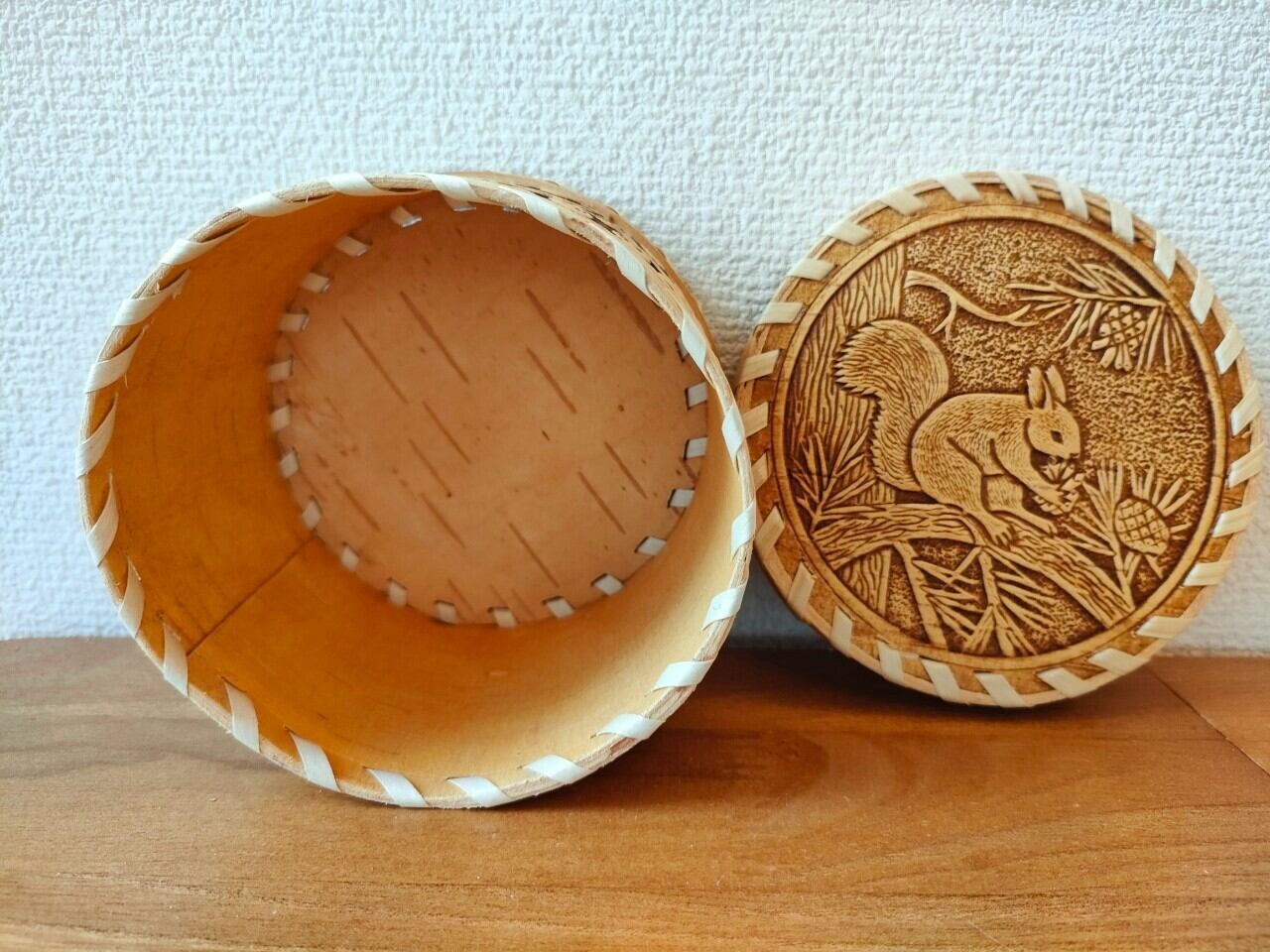 【BE126】北欧ロシア雑貨、ベレスタ・白樺の小物入れ リス
