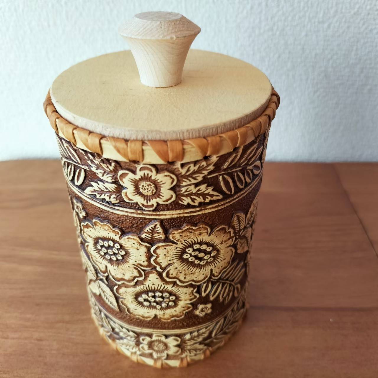 【BE128】北欧ロシア雑貨、ベレスタ・白樺の小物入れ/キャニスター【花】