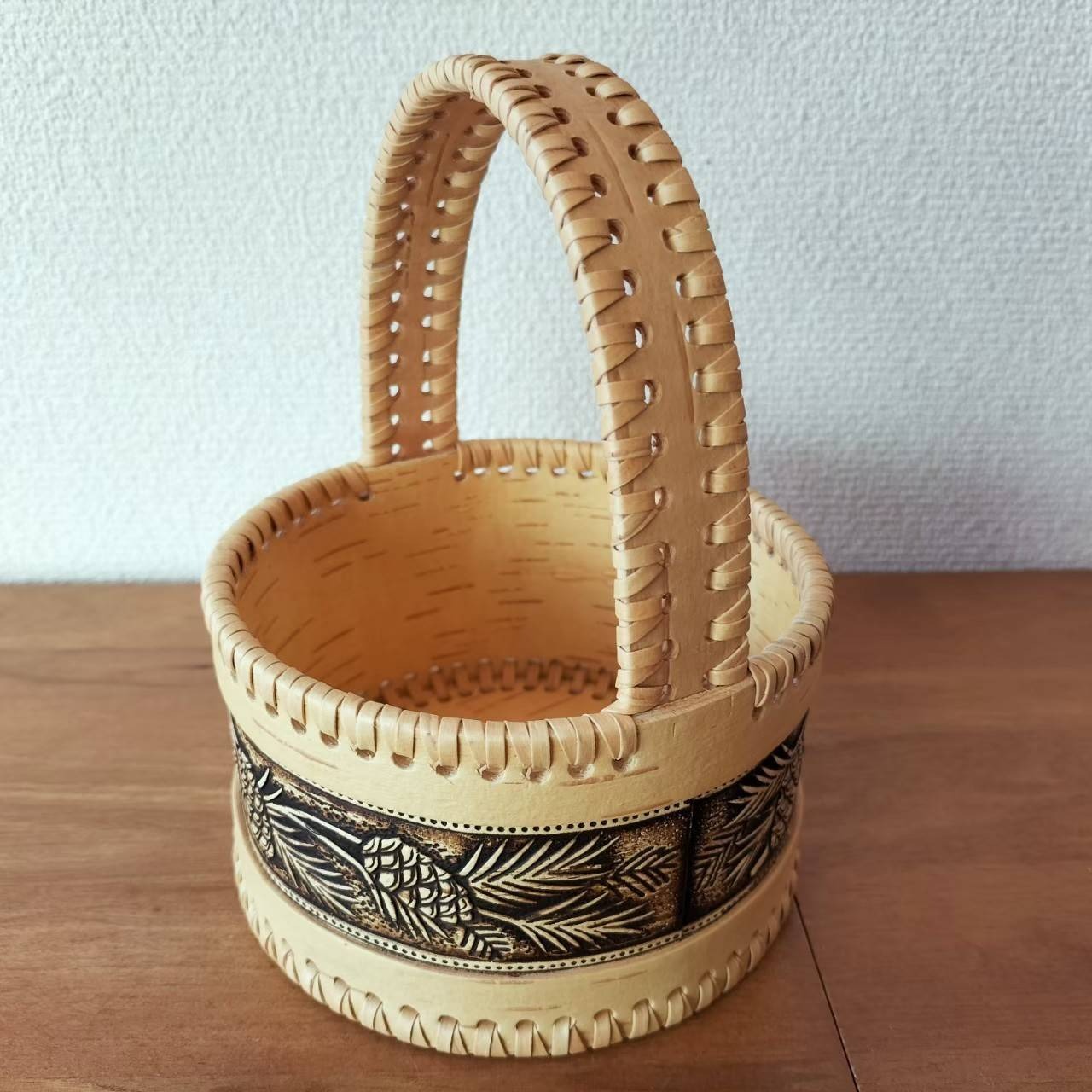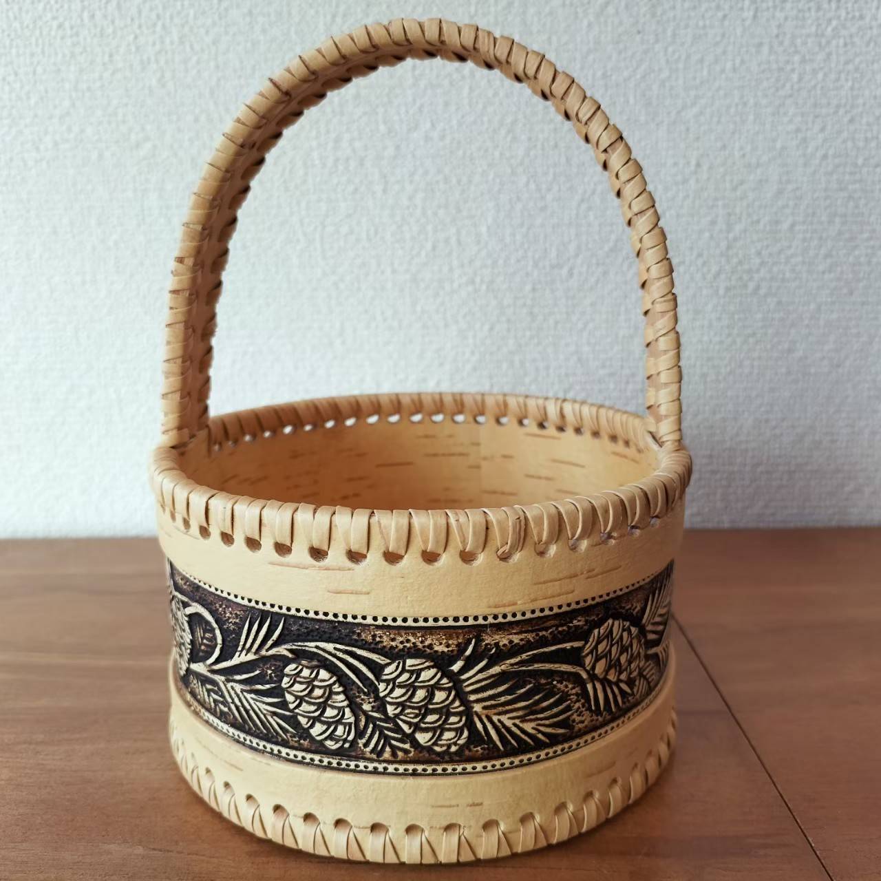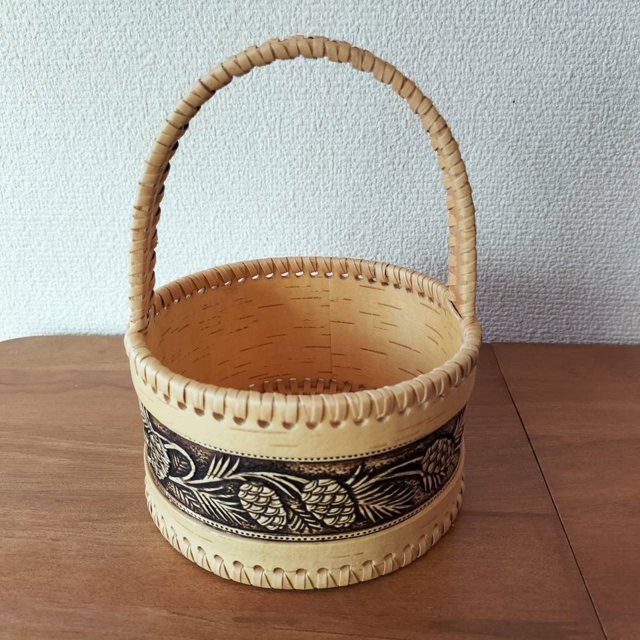 【BE129】北欧ロシア雑貨、ベレスタ・白樺の小物入れ【まつぼっくりの籠】