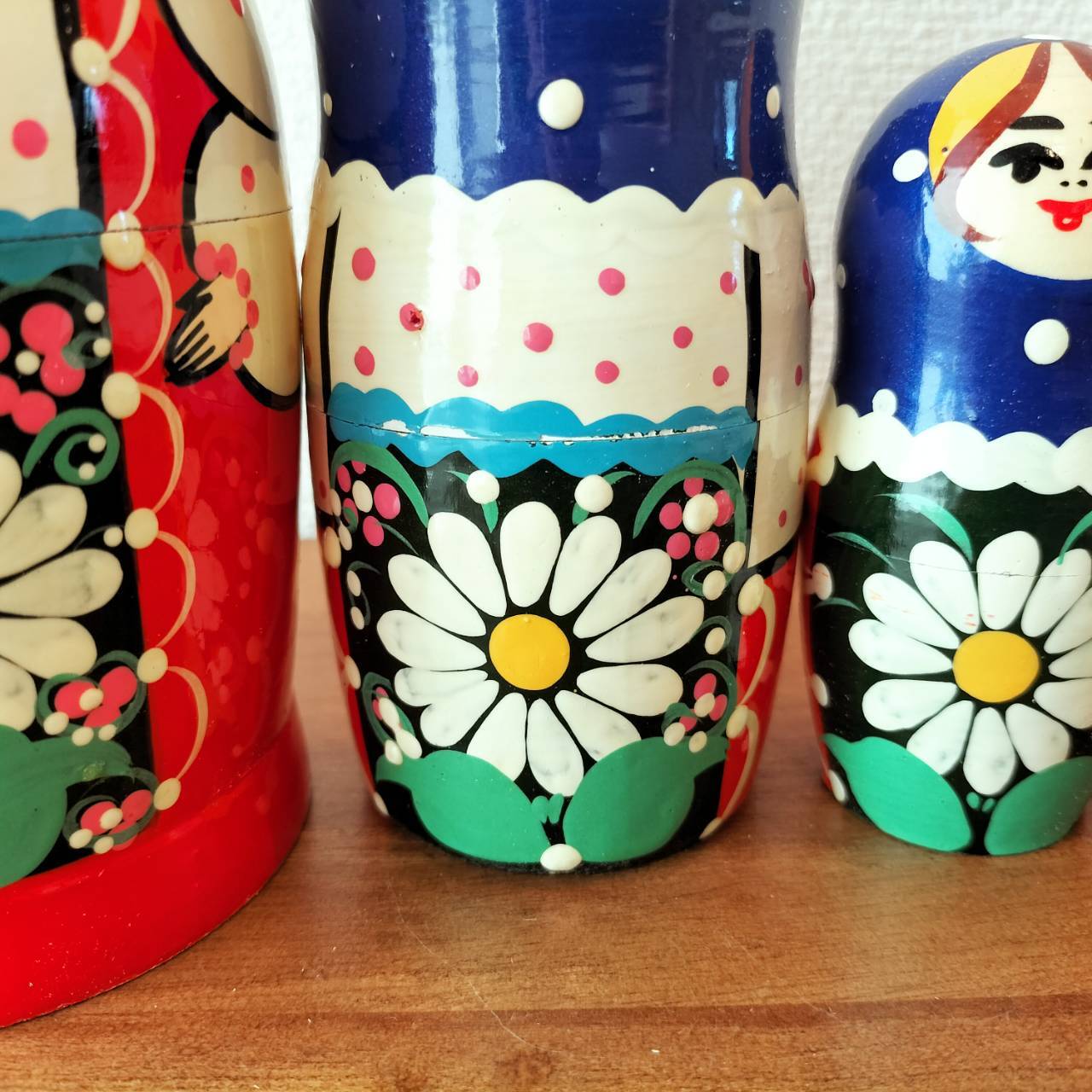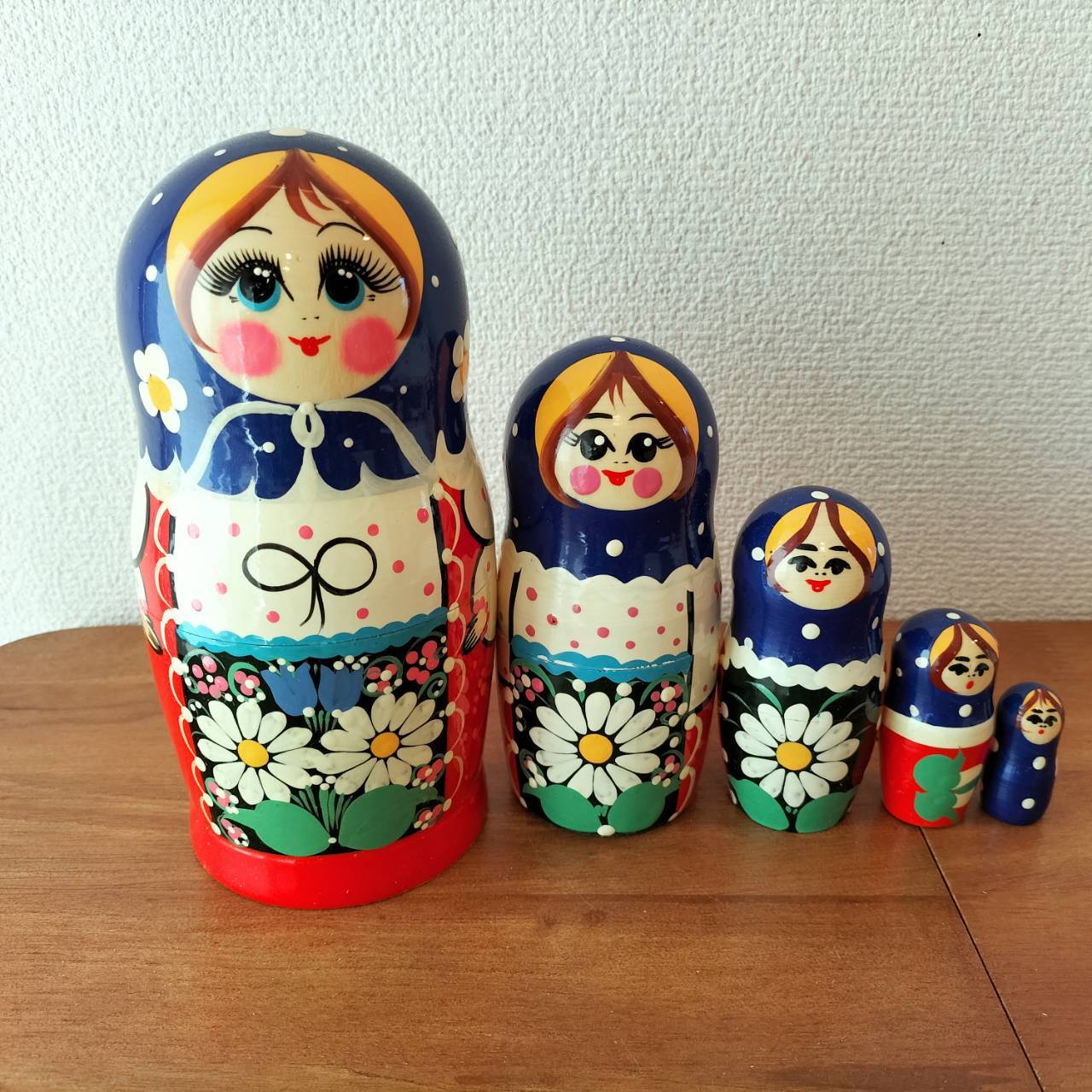 ロシアの職人さんによるハンドメイドの作品です。ロシア伝統の原色系べた塗りのカラフルな木製工芸品・マトリョーシカです。自然木の香りがします。