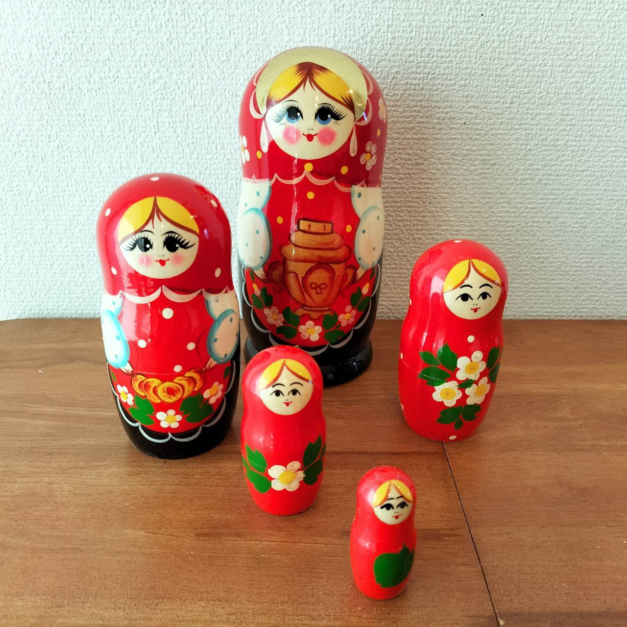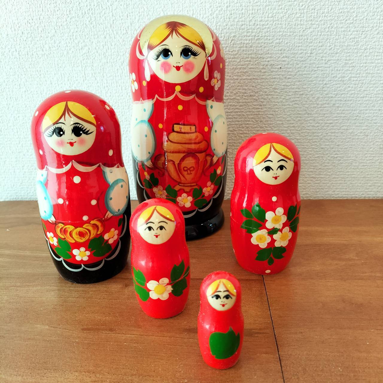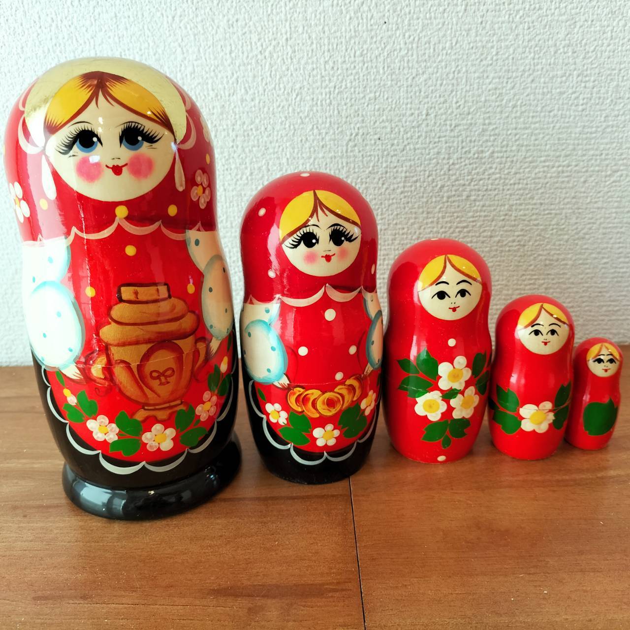 ロシアの職人さんによるハンドメイドの作品です。ロシア伝統の原色系べた塗りのカラフルな木製工芸品・マトリョーシカです。自然木の香りがします。